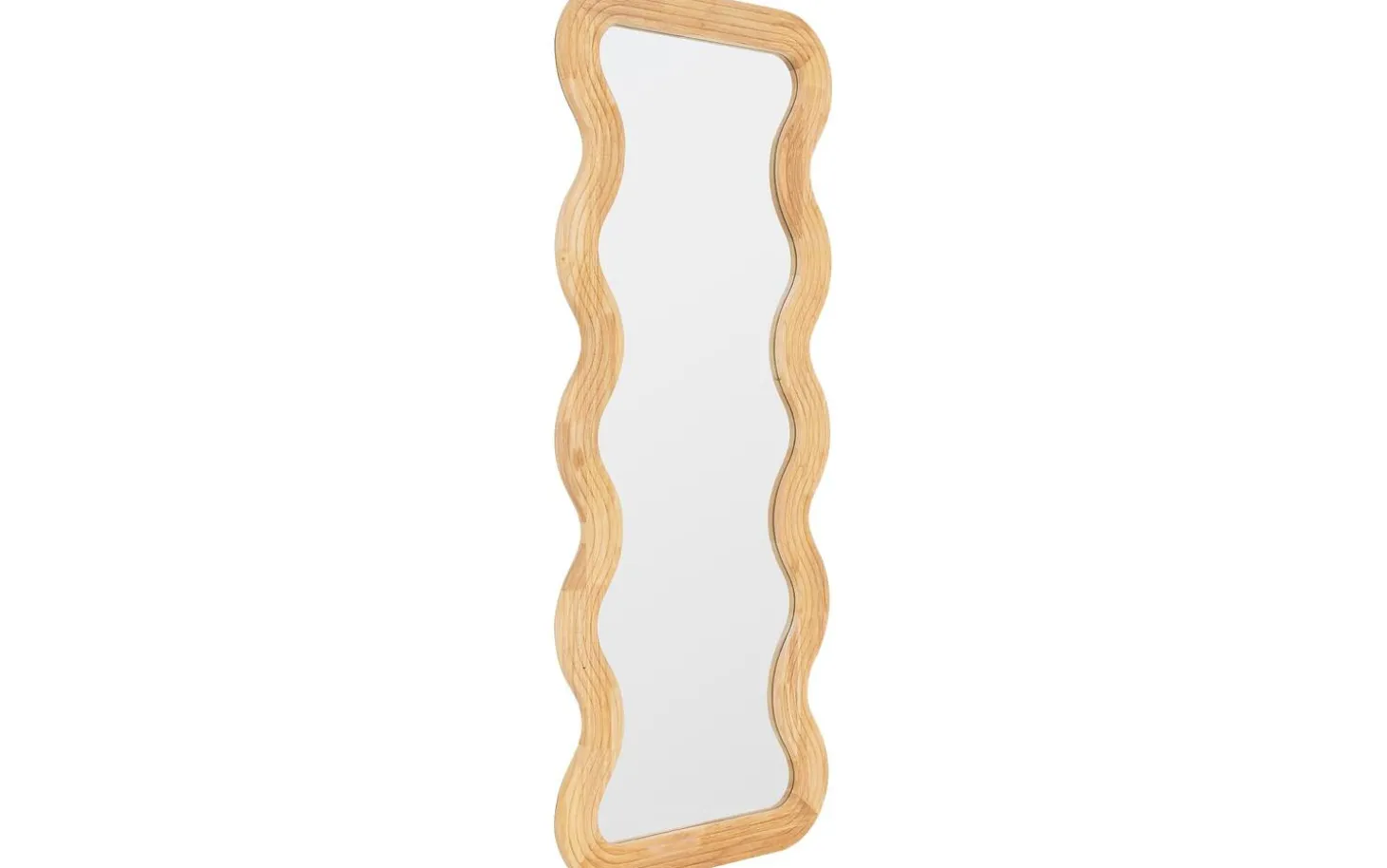 Wandspiegel Sireen bringt Eleganz in Ihr Interieur mit seinem auffälligen gewellten Holzrahmen und klarem Spiegelglas. Dieser vertikale Spiegel von 60 x 150 cm schafft nicht nur zusätzlichen Raum und Licht in Ihrer Wohnung, sondern bildet auch ein stilvolles dekoratives Element an der Wand. Die einzigartige gewellte Formgebung des Rahmens macht diesen Wandspiegel zu einem echten Blickfang, der perfekt in moderne und klassische Einrichtungen passt.