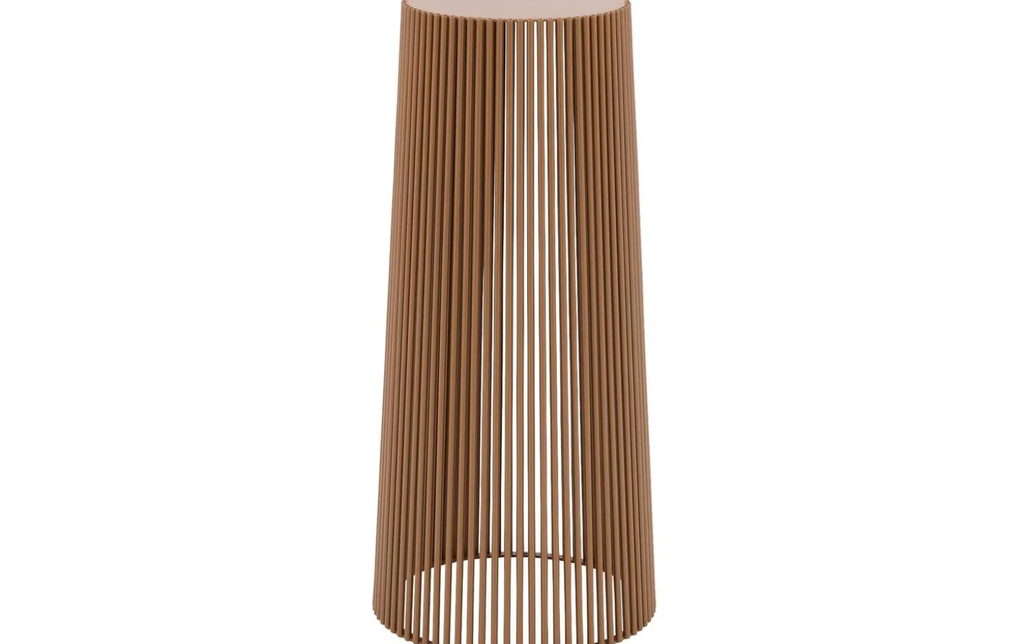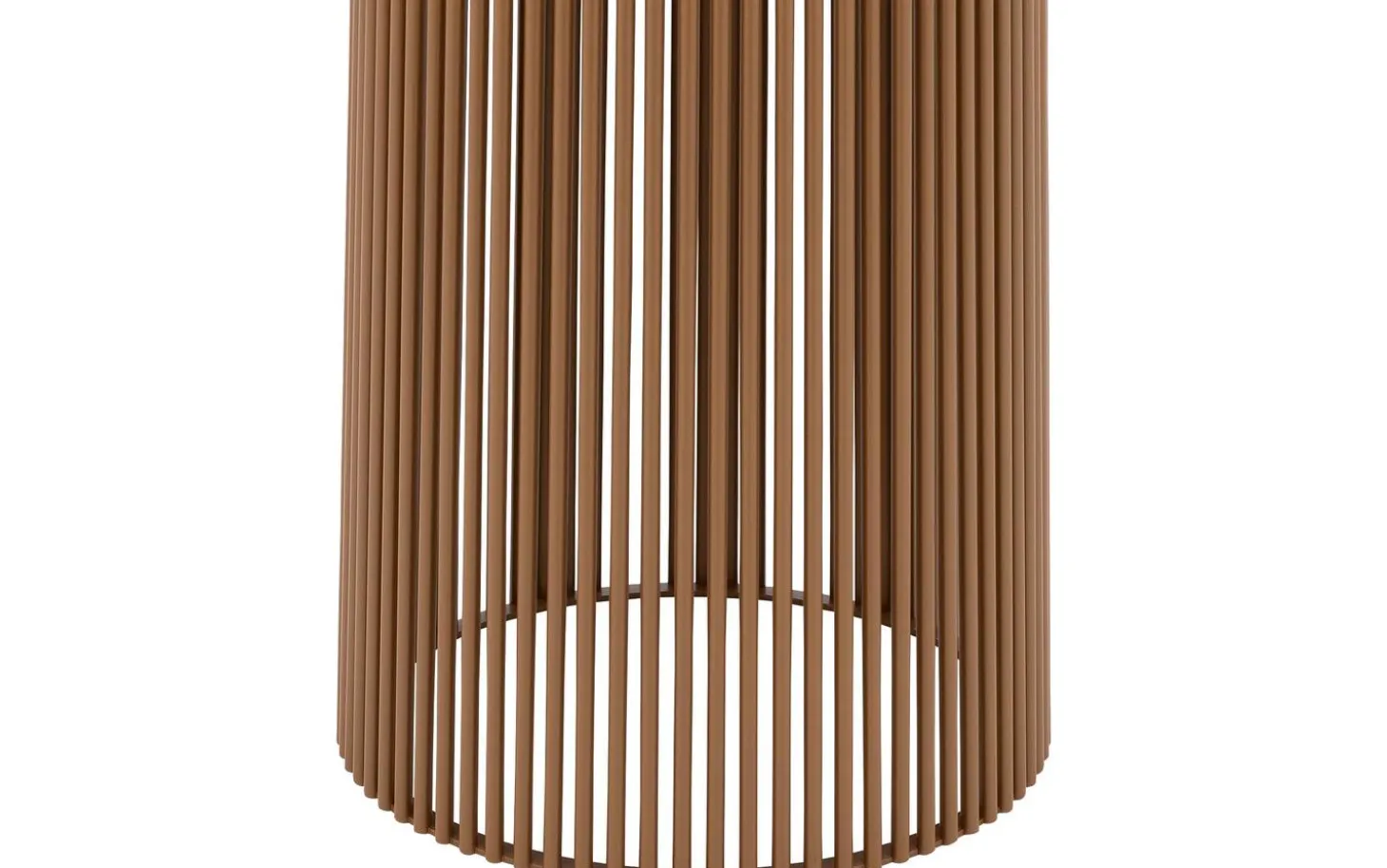 Das Metallgestell verfügt über eine hochwertige Pulverbeschichtung in terra-farbener Farbe, die für eine Schutzschicht und luxuriöse Ausstrahlung sorgt. Das runde, offene Design verleiht der Säule einen modernen und luftigen Look, der perfekt zu verschiedenen Einrichtungsstilen passt.