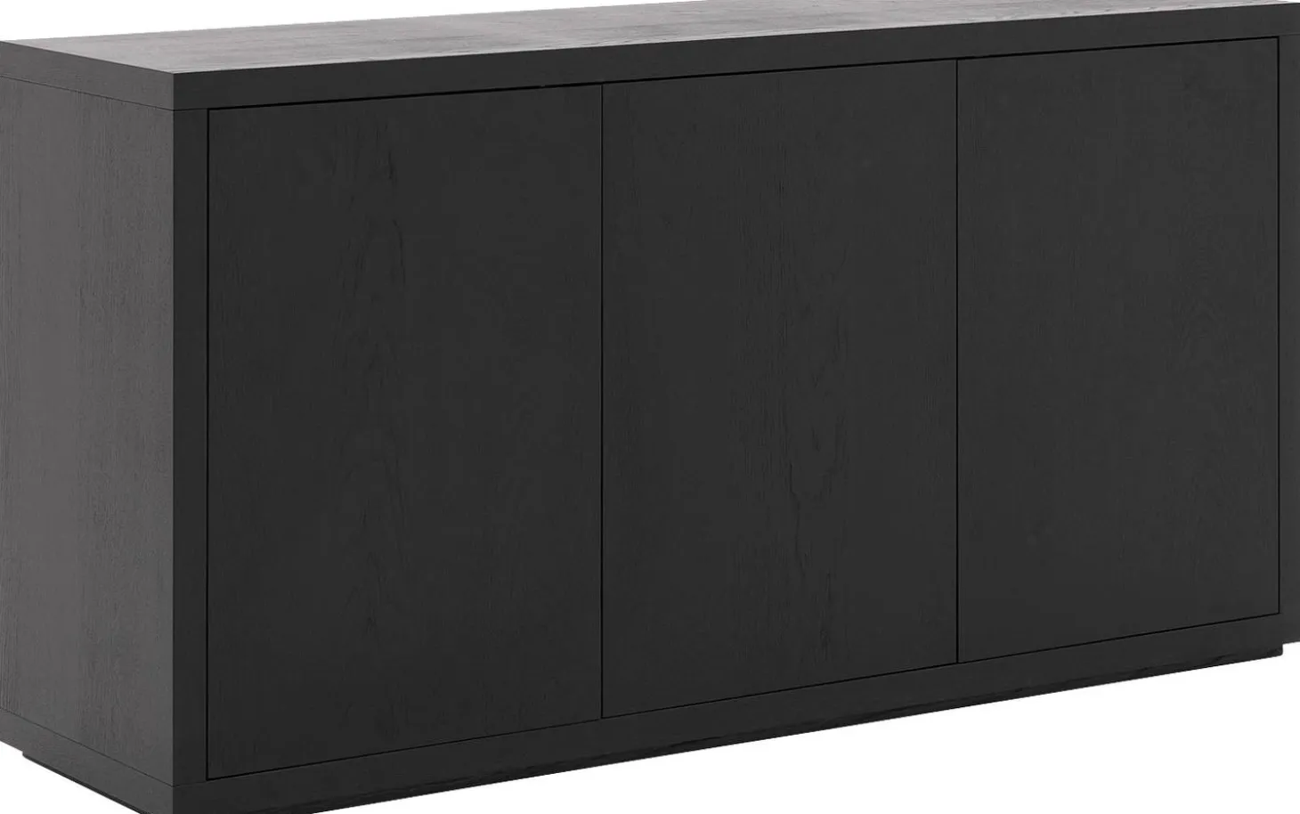 Sideboard Barcelona kombiniert robuste schwarze Eleganz mit praktischem Stauraum. Dieses Eichen-Sideboard mit lackierter Oberfläche sorgt für eine natürliche Ausstrahlung, die Ihrem Interieur sofort Charakter verleiht. Das praktische Push-to-Open-System hält die klaren Linien intakt, während der großzügige Stauraum hinter den drei Türen alles ordentlich außer Sichtweite hält.