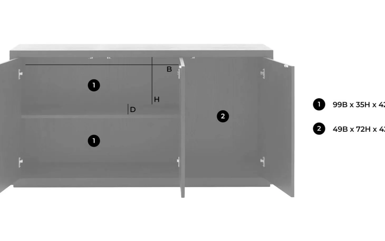 - Großzügiger Stauraum hinter den Türen für eine aufgeräumte Ausstrahlung