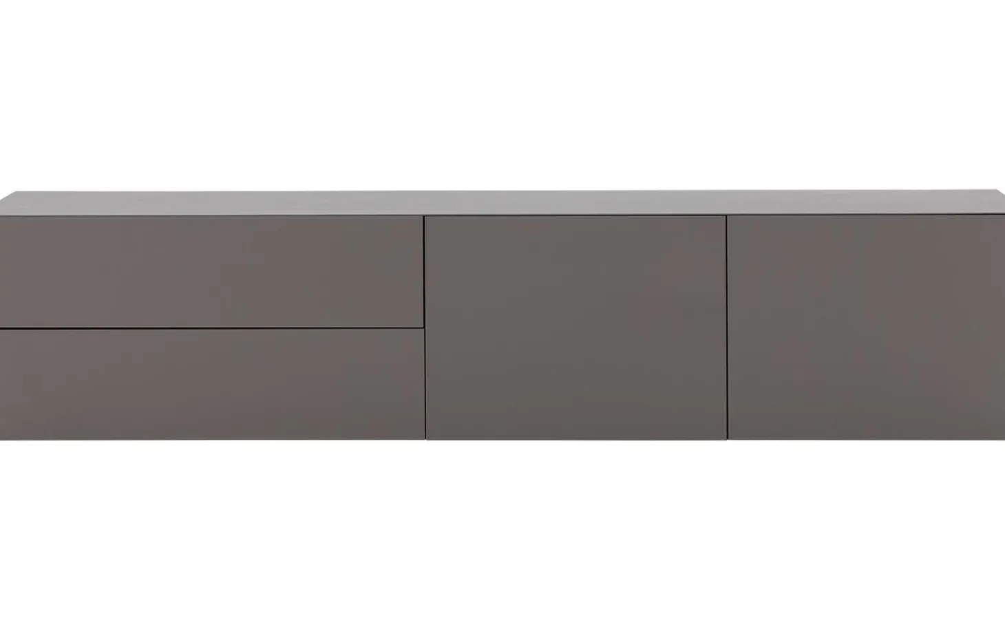 Mit zwei Türen und zwei Schubladen bietet dieses schwebende Sideboard reichlich Möglichkeiten für Aufbewahrung und Styling. Die asymmetrische Aufteilung mit Türen rechts und Schubladen links sorgt für ein verspieltes und funktionales Ganzes. Perfekt für eine aufgeräumte und persönliche Ausstrahlung.
