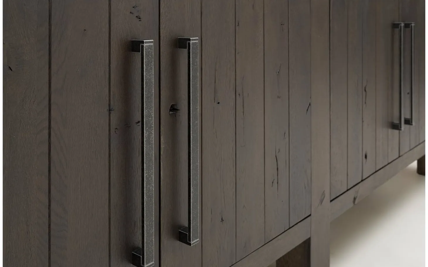 Stilvolle Details dieses grauen Eichen-Sideboards