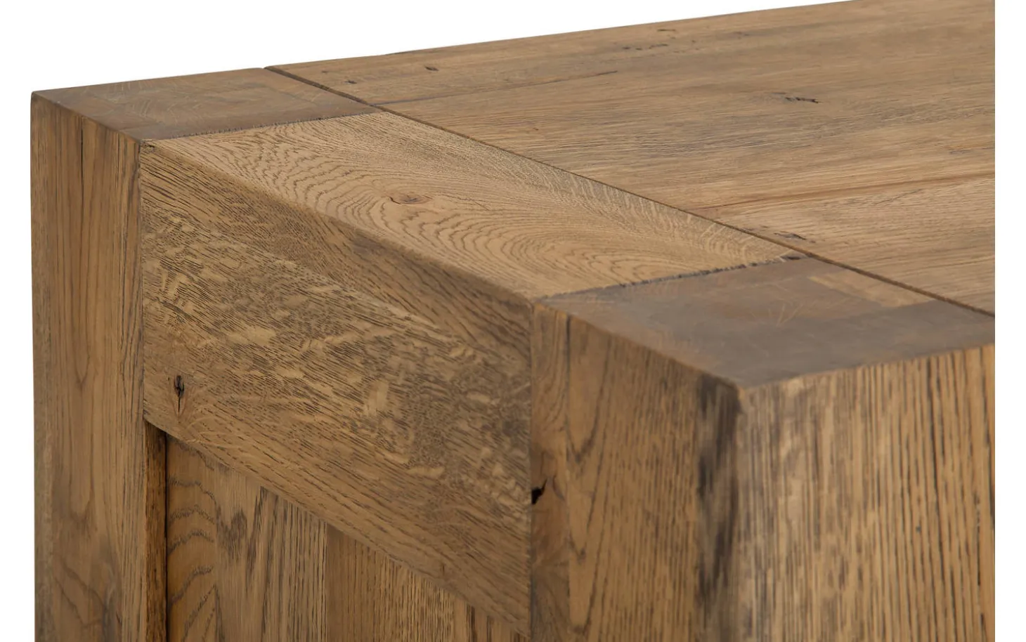 - Robuste Eichen-Konstruktion mit grober, natürlicher Holzstruktur