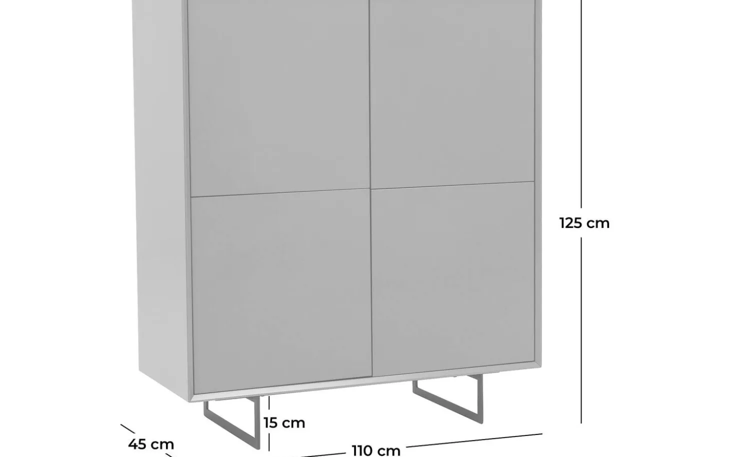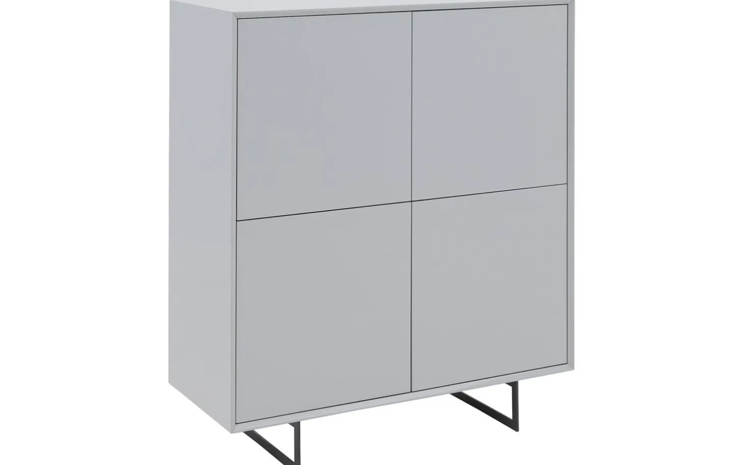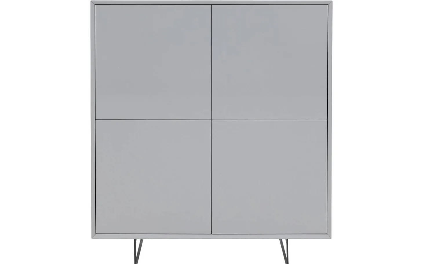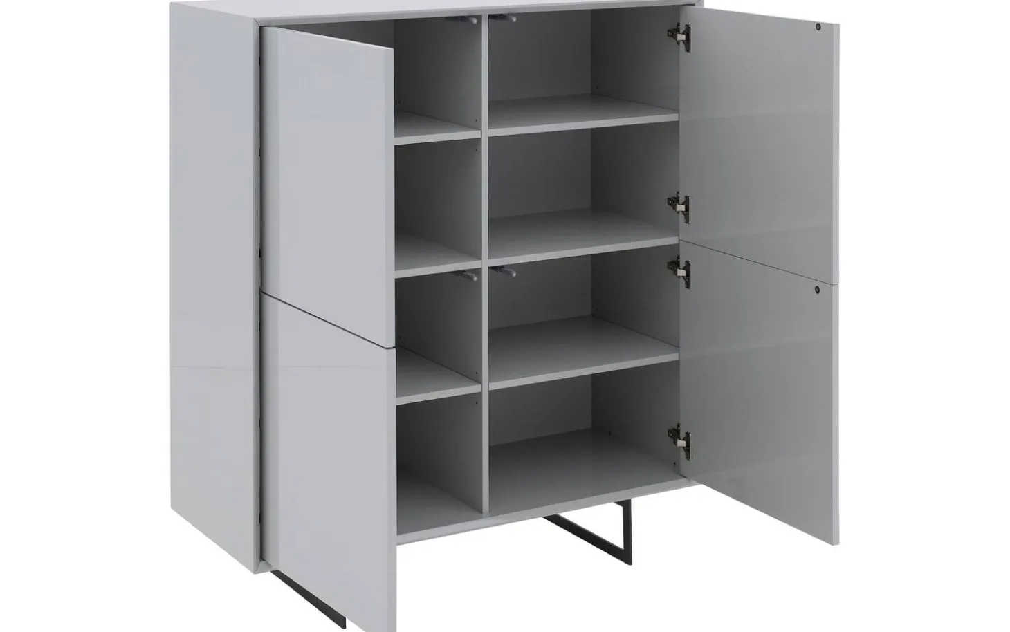 Aufbewahrungsschrank Vienna bietet großzügigen Stauraum mit einer frischen, modernen Ausstrahlung. Dieser graue Hochglanz-Aufbewahrungsschrank verfügt über acht praktische Fächer, verteilt auf vier Türen mit Push-to-Open-System. Ein echter Blickfang, der Ordnung und Ruhe in jeden Raum bringt, vom Wohnzimmer bis zum Schlafzimmer.