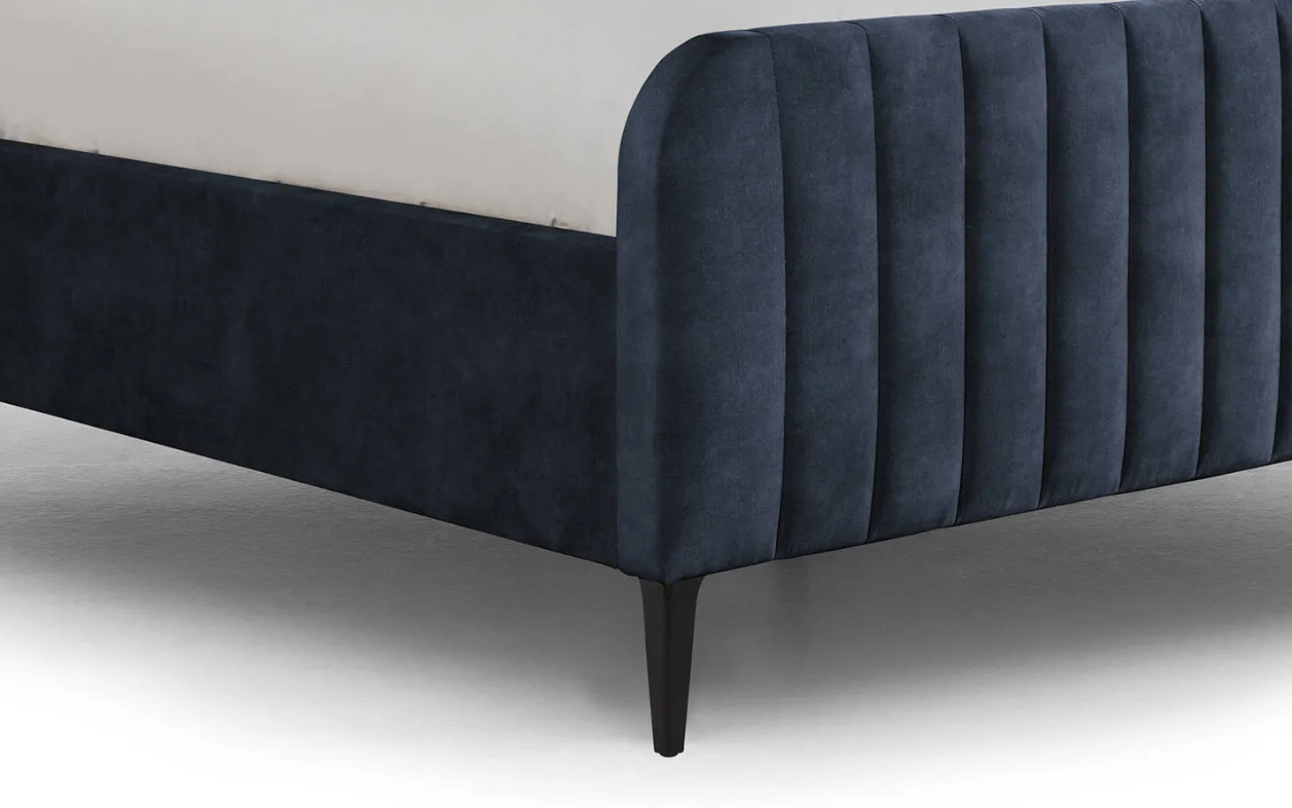 Das Bettgestell ist handwerklich gefertigt. Diese fachkundige Arbeit zeigt sich deutlich in der weichen Polsterung des Kopf- und Fußteils sowie in den handgefertigten Ziernähten. Der Bezug aus Velours verleiht dem Bettgestell zudem eine edle Optik.