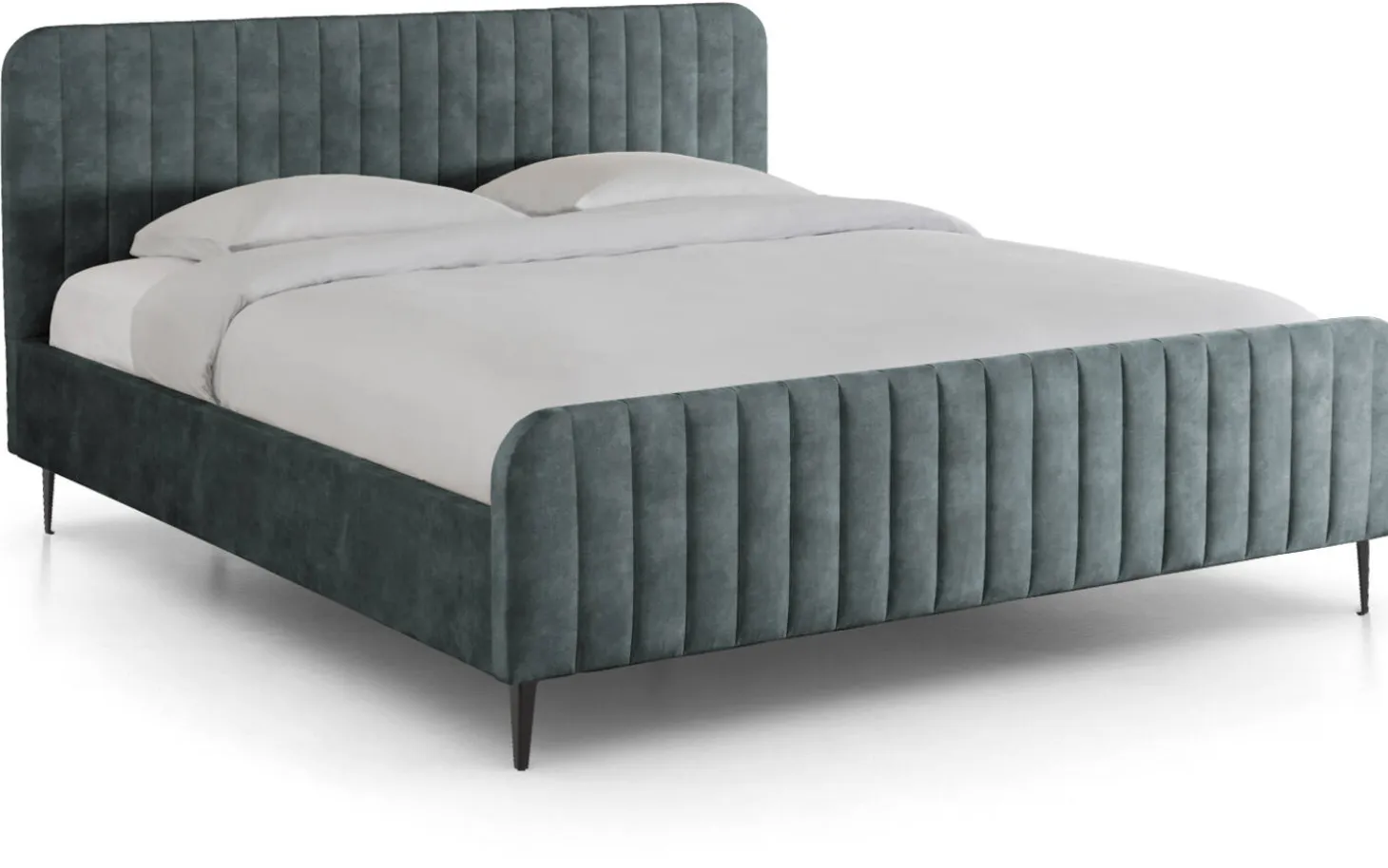 Das Bettgestell ist handwerklich gefertigt. Diese fachkundige Arbeit zeigt sich deutlich in der weichen Polsterung des Kopf- und Fußteils sowie in den handgefertigten Ziernähten. Der Bezug aus Velours verleiht dem Bettgestell zudem eine edle Optik.