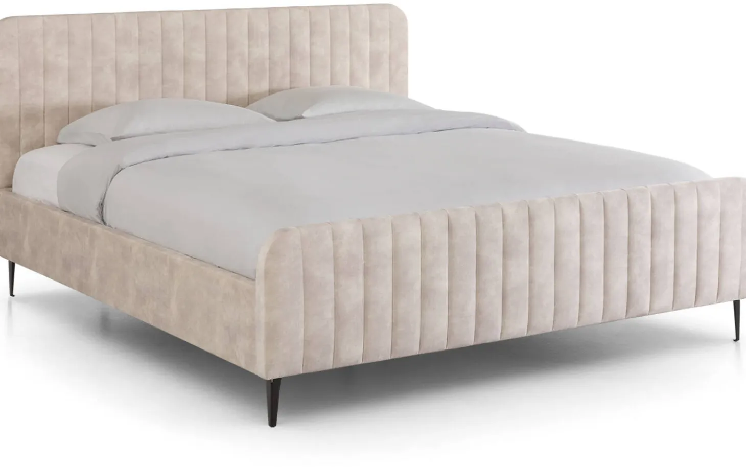 Das Bettgestell ist handwerklich gefertigt. Diese fachkundige Arbeit zeigt sich deutlich in der weichen Polsterung des Kopf- und Fußteils sowie in den handgefertigten Ziernähten. Der Bezug aus Velours verleiht dem Bettgestell zudem eine edle Optik.