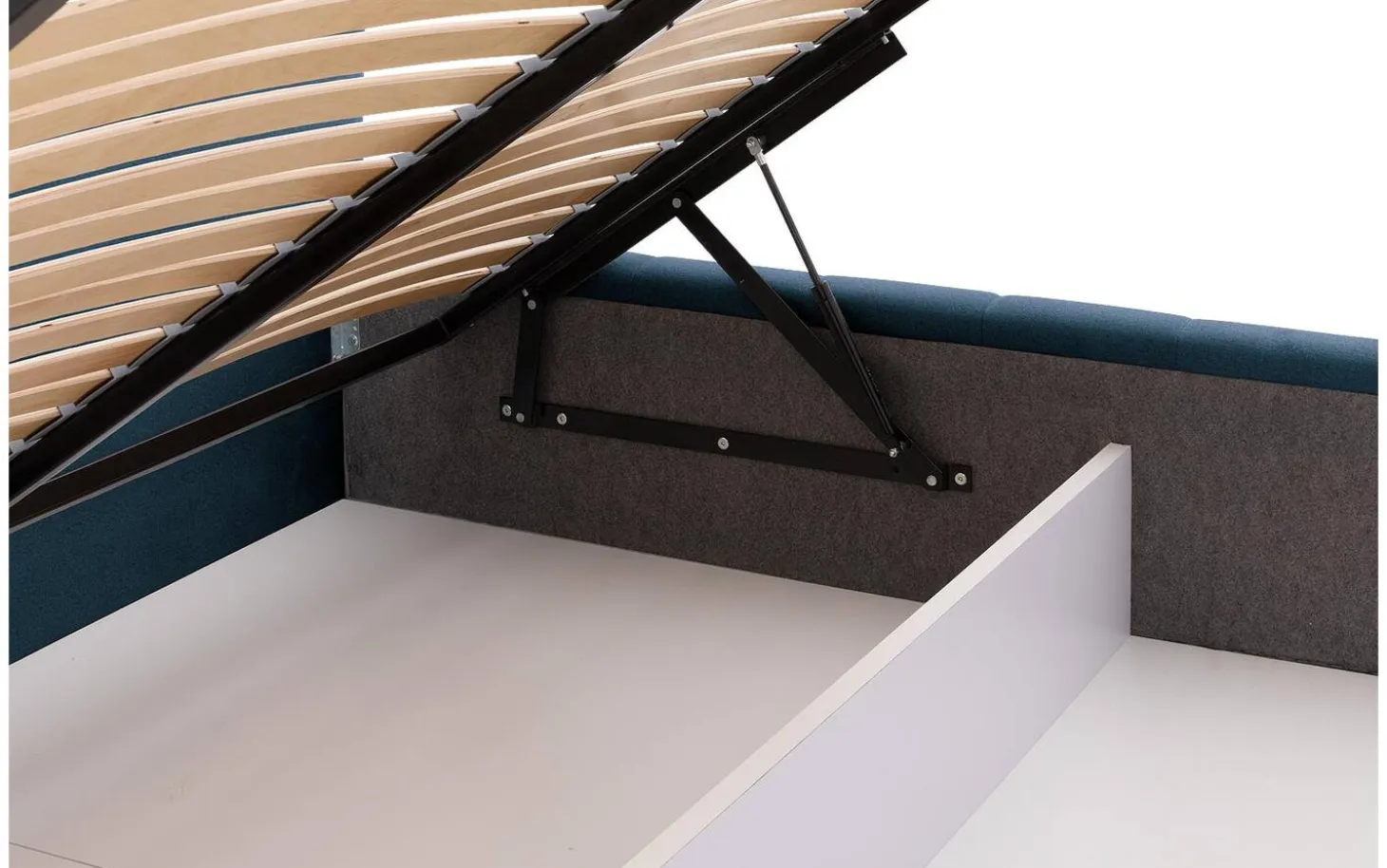 Het bedframe opent eenvoudig met behulp van de aanwezige gasvering. Deze vering is sterk genoeg om jouw matras inclusief dekbed in z’n geheel omhoog te drukken. Je kunt dus op een snelle en makkelijke manier jouw spullen opbergen onder jouw bed.