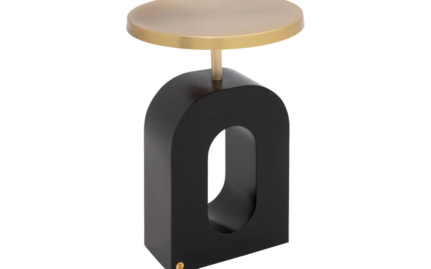 Beistelltisch Albin hat eine runde Form mit raffinierten Kurven im Fuß, die für einen trendigen, modernen Look sorgen. Der Kontrast zwischen der goldfarbenen Platte und dem schwarzen Untergestell verleiht Charakter und passt sowohl in moderne als auch in organische Einrichtungen.