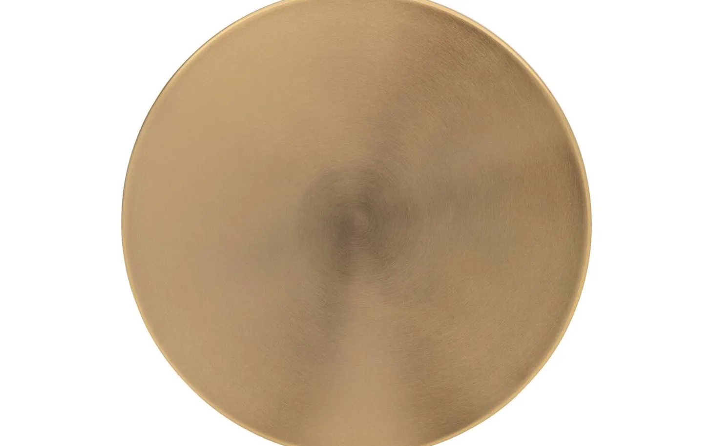 Die runde Tischplatte ist vollständig aus Metall mit einer hochwertigen pulverbeschichteten Oberfläche in Goldfarbe. Durch die glatte Oberfläche ist der Tisch leicht sauber zu halten und behält seinen Glanz.
