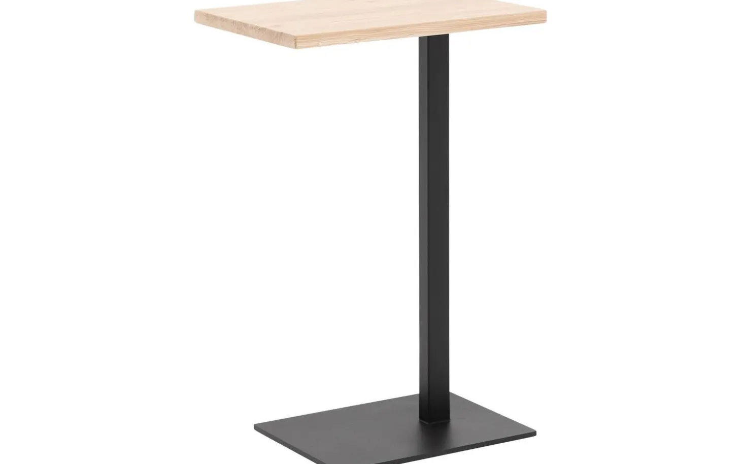 Der schwarze Metallfuß hat eine quadratische Form und bietet eine stabile Basis. Der Kontrast zwischen dem warmen Eichenholz und dem kühlen schwarzen Metall macht Tangel zu einem besonderen Stück für neben Ihrem Bett.