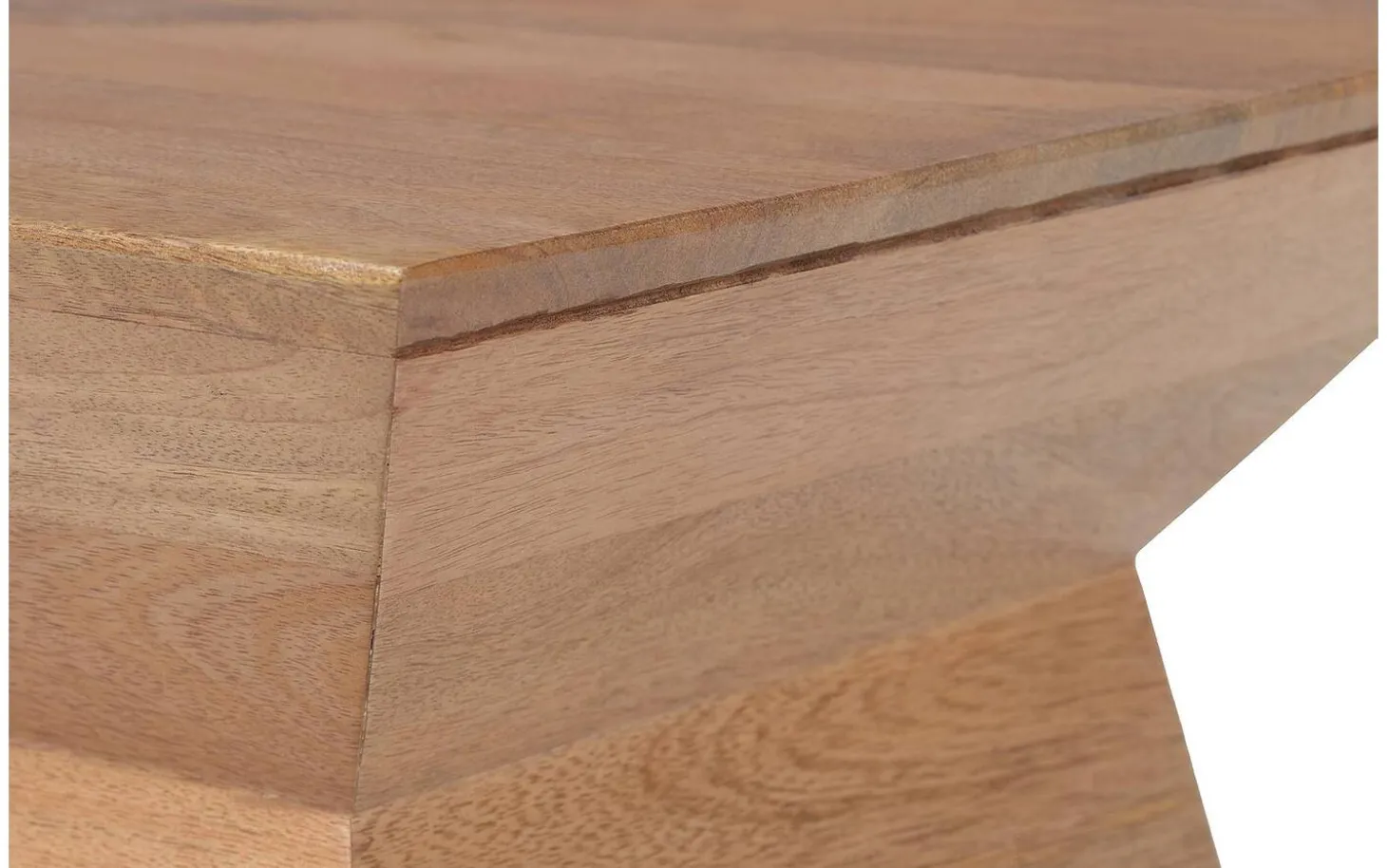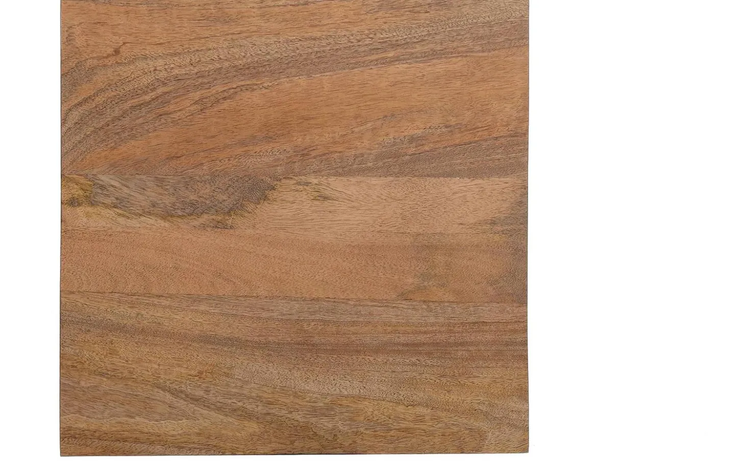 Die Tischplatte ist aus Mangoholz im Naturton mit einer Soft-Touch-Lackierung gefertigt. Diese spezielle Lackschicht sorgt dafür, dass die natürliche matte Ausstrahlung und fühlbare Holzmaserung erhalten bleiben, während Sie gleichzeitig vor Ringen und Kratzern geschützt sind.
