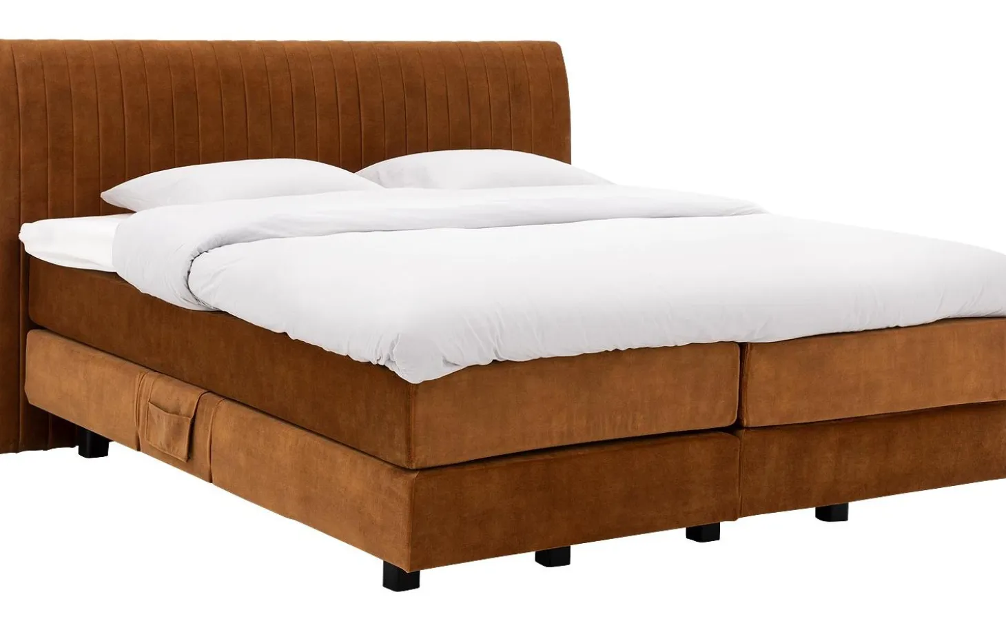 De boxspring op de afbeelding is in stof adore 28 cognac.