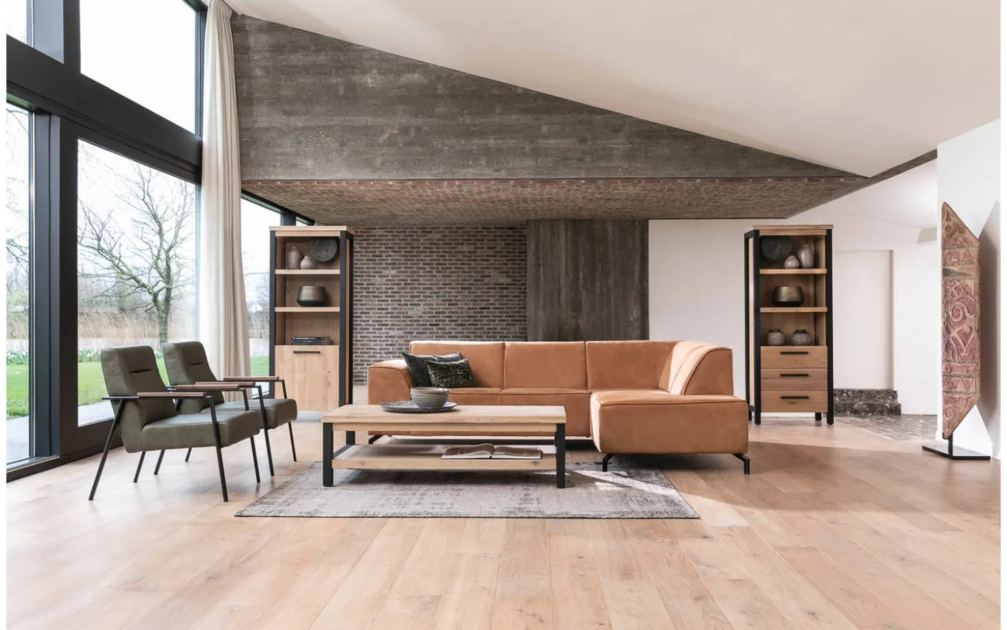 - Industrieller Charakter durch Kombination von Eiche und schwarzen Metallfüßen