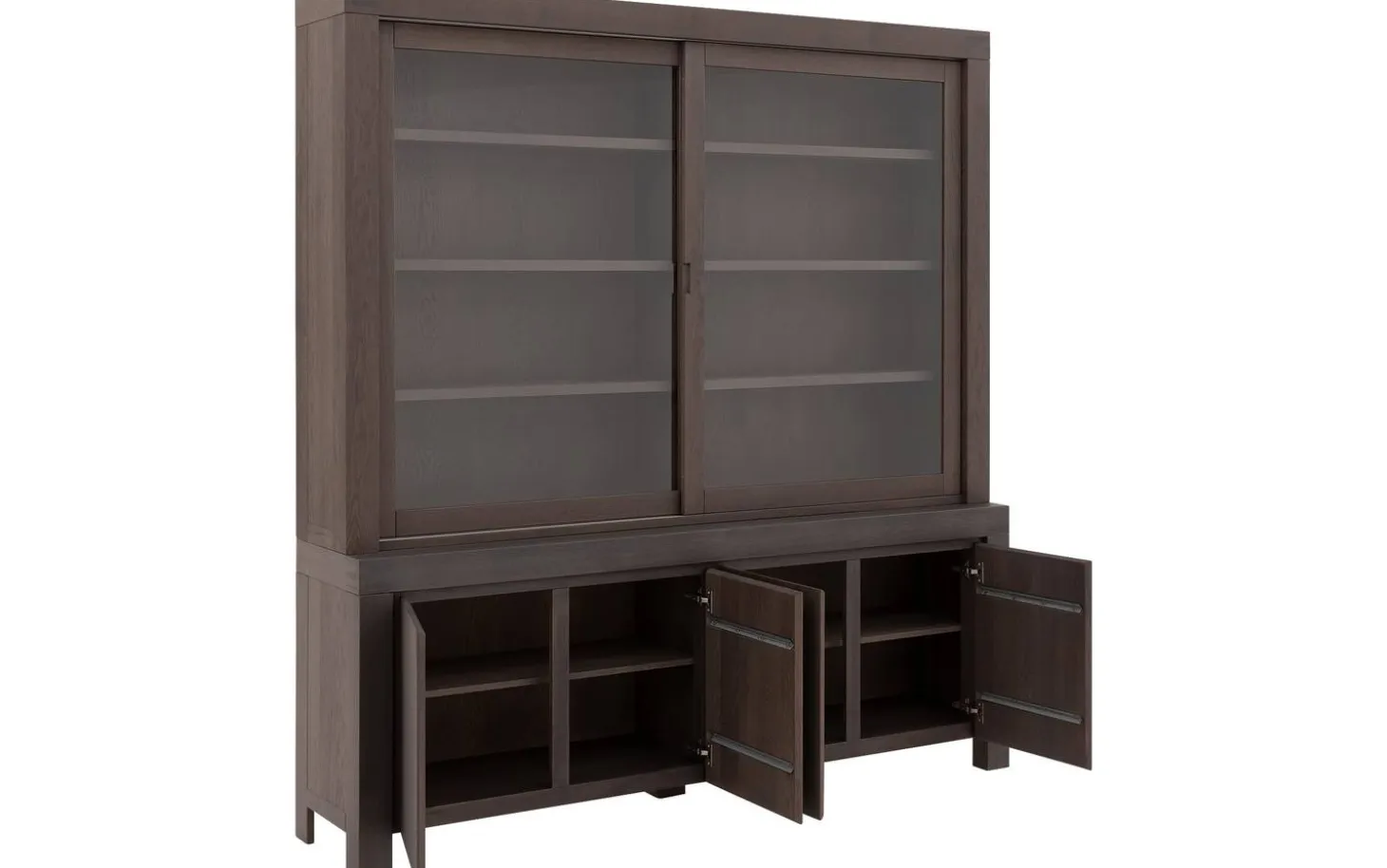 De combinatie van draaideuren en schuifdeuren maakt Clear extra praktisch. Je hebt gemakkelijk toegang tot al je spullen, van serviesgoed tot mooie woonaccessoires. Het soft closing systeem zorgt ervoor dat de deuren altijd zacht en geruisloos sluiten.