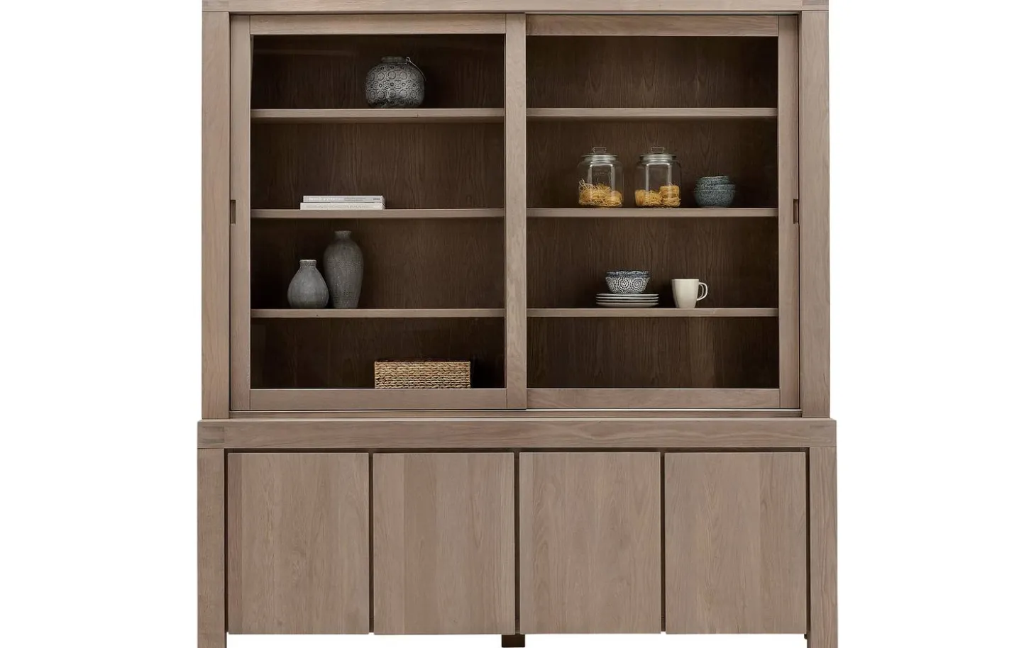 Buffetkast Clear combineert een warme houtlook met slim ontworpen opbergruimte. De landelijke uitstraling en de praktische combinatie van draaideuren en schuifdeuren maken deze eiken buffetkast tot een echte blikvanger in je woonkamer of eetkamer. Perfect voor wie houdt van natuurlijk wonen met karakter.