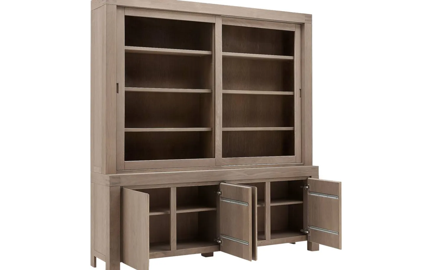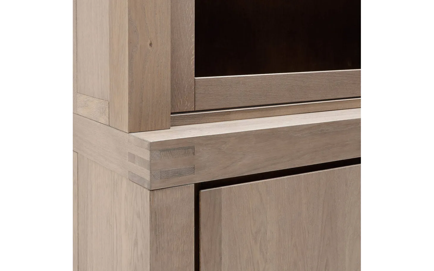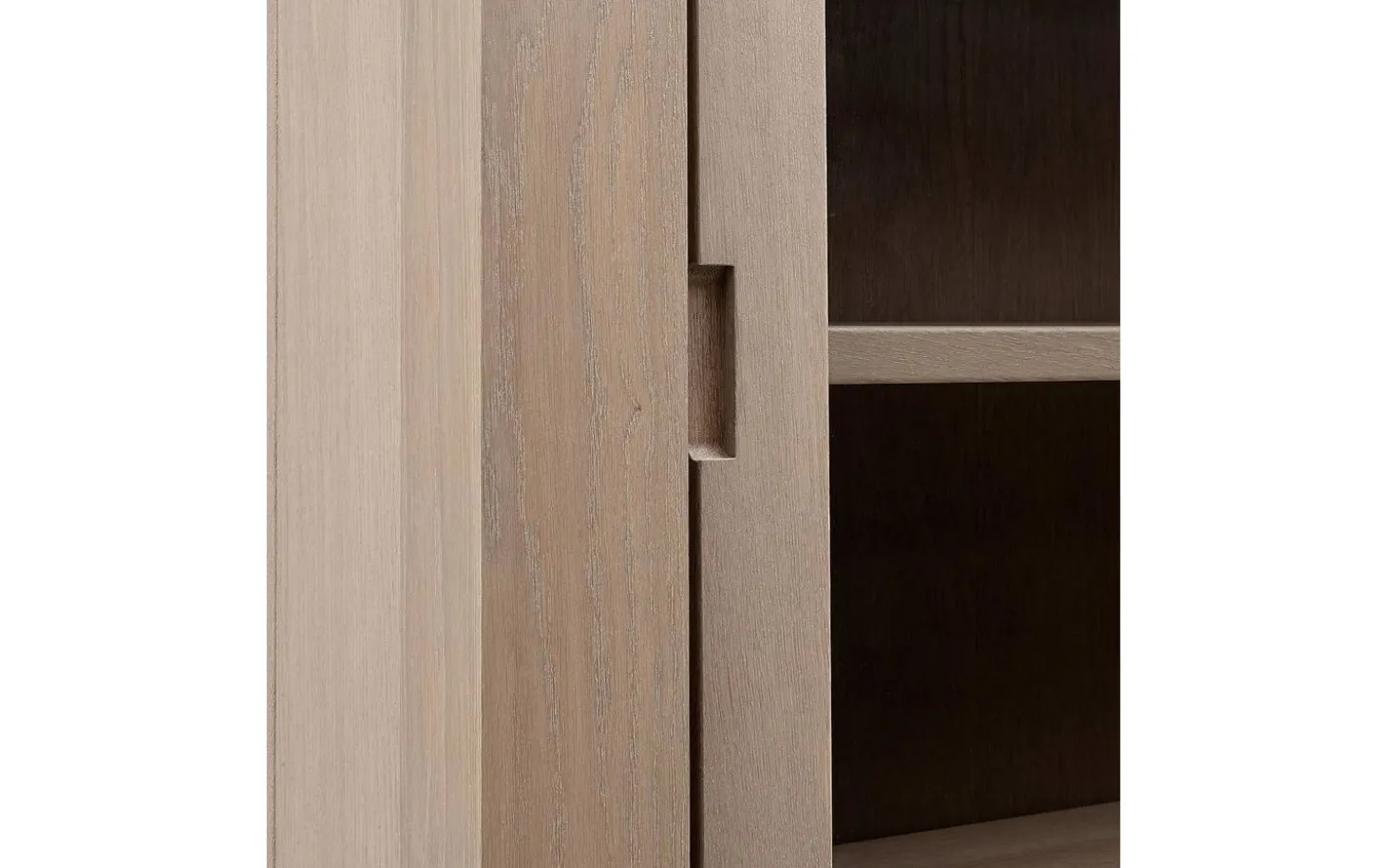 Deze eiken buffetkast straalt pure warmte uit dankzij de verweerde afwerking. De natuurlijke nerftekening en kleurschakeringen geven Clear een authentiek karakter. De combinatie van open en gesloten vakken zorgt voor een speelse uitstraling en biedt alle ruimte om jouw mooiste spullen te presenteren én praktisch op te bergen.