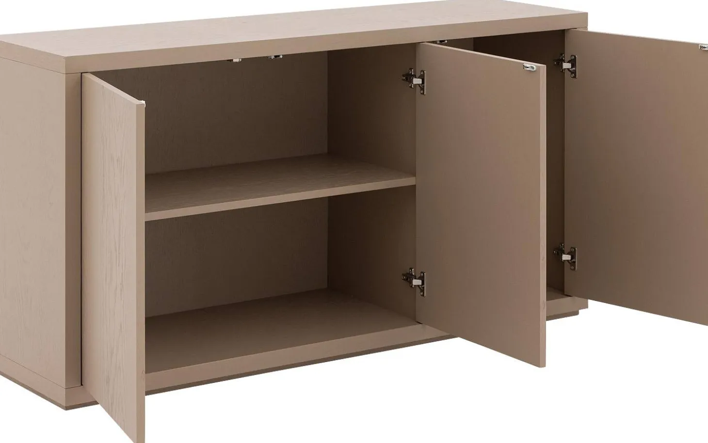 Sideboard Barcelona kombiniert zeitlose Eleganz mit praktischem Stauraum in einem warmen Graubeige-Ton. Das Push-to-Open-System sorgt für klare Linien ohne sichtbare Griffe, während das hochwertige Eichenholz eine natürliche Wärme ausstrahlt. Ein raffiniertes Möbelstück, das Ihrem Wohnraum sofort Charakter verleiht.