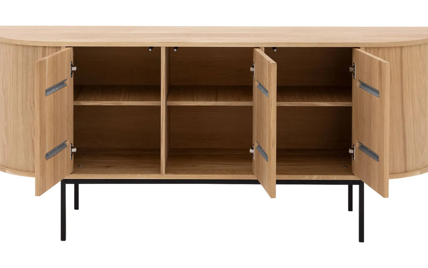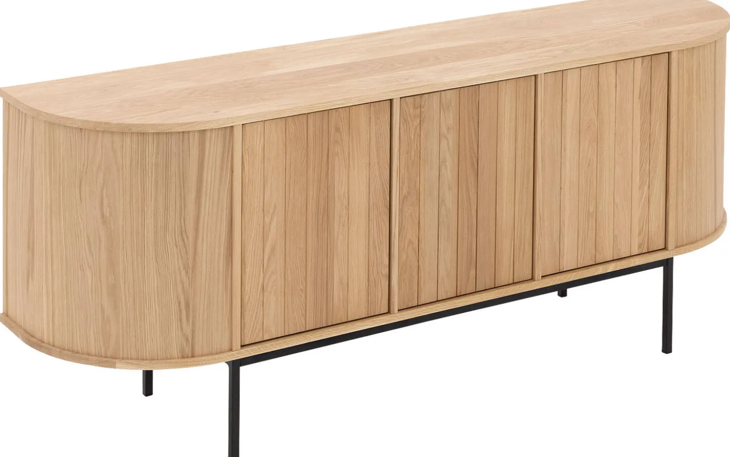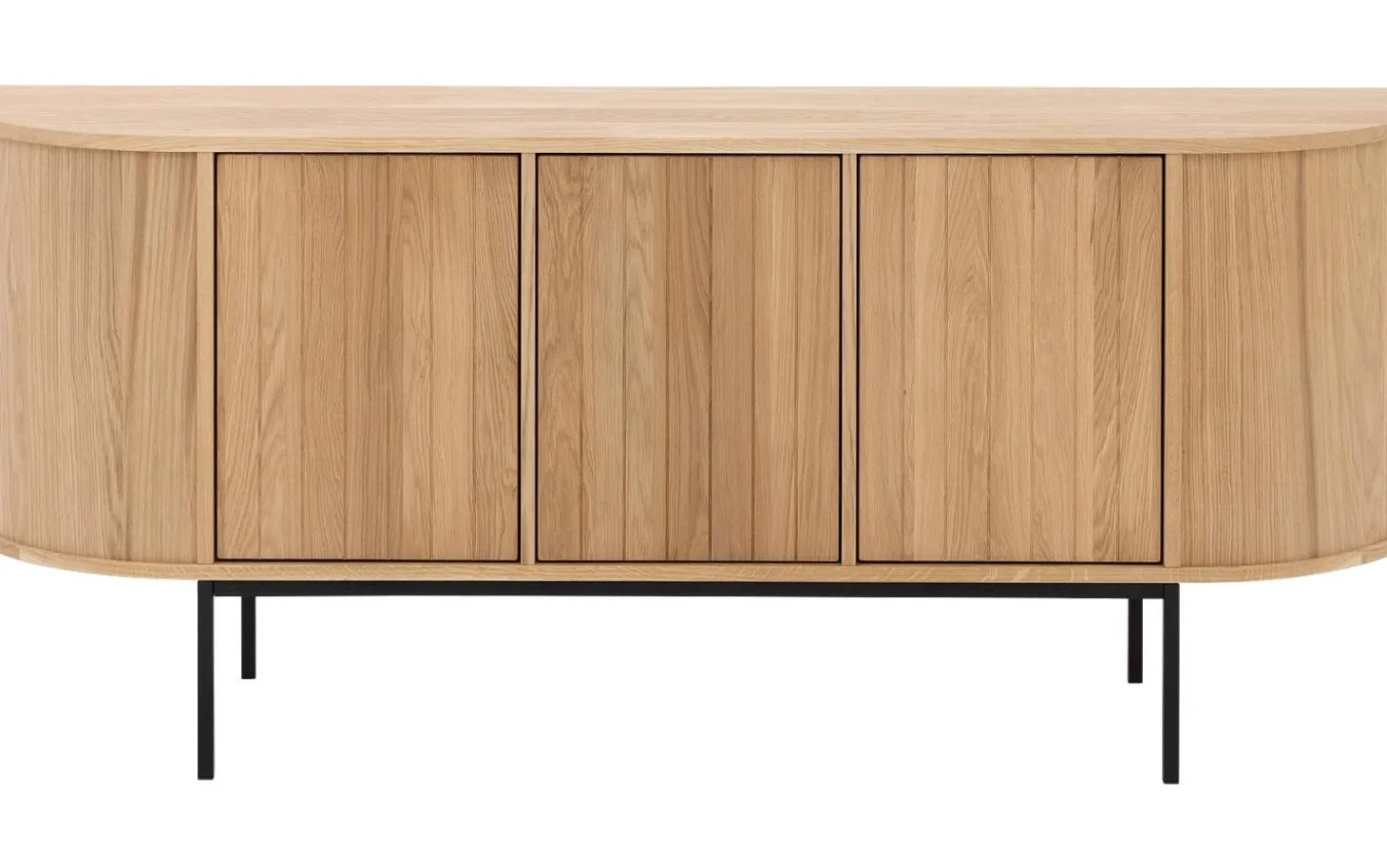 Sideboard Delfina kombiniert moderne Eleganz mit praktischem Stauraum in einem einzigartigen niederländischen Design. Die sanften Rundungen, vertikal gestreiften Türen und subtilen schwarzen Füße schaffen eine zeitlose Ausstrahlung, die Ihren Raum direkt aufwertet. Das praktische Push-to-Open-System sorgt für klare Linien ohne sichtbare Griffe.