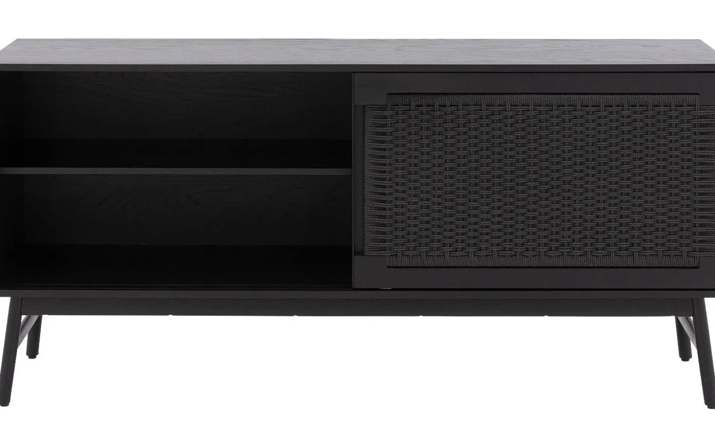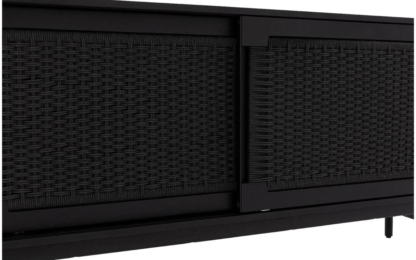 Dieses schwarze Eichen-Sideboard strahlt modernen Charme mit seiner klaren Formgebung aus. Die geflochtene Holzstruktur fügt eine wunderbare natürliche Note hinzu, während die schwarze Lackschicht für zeitlose Eleganz sorgt. Perfekt für alle, die die Kombination aus Natur und Design lieben.