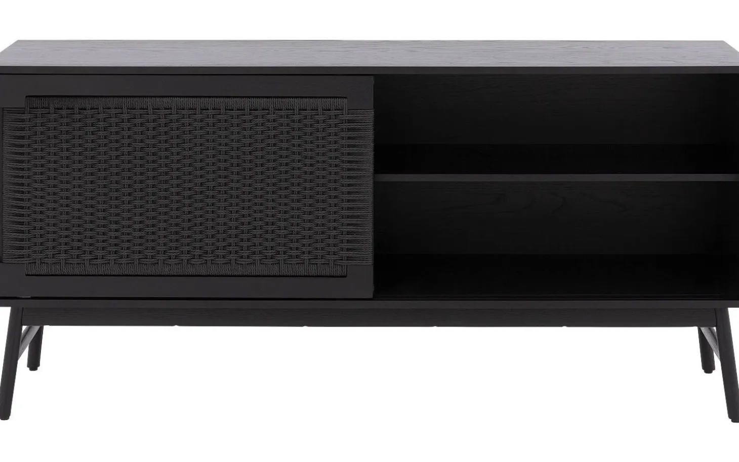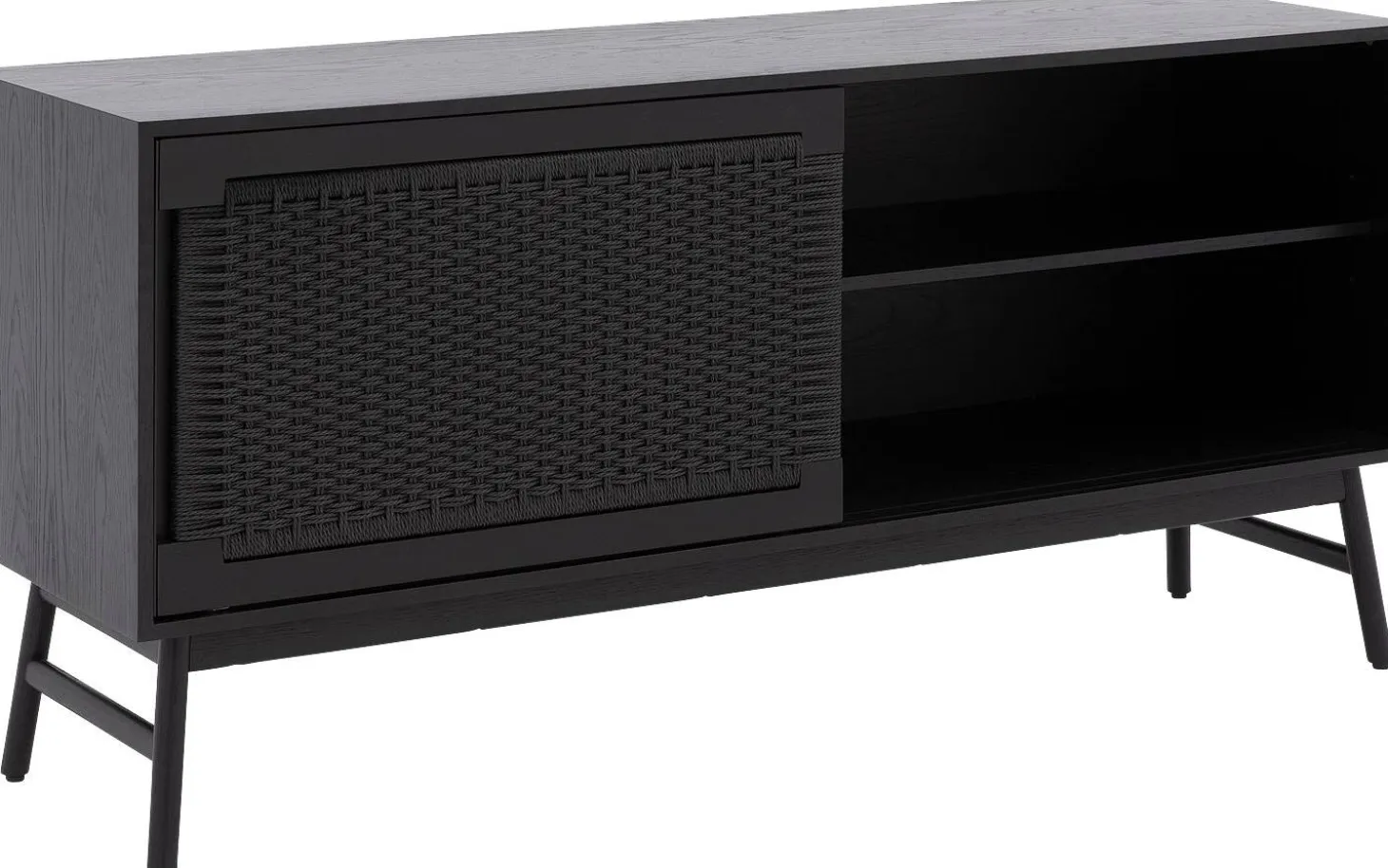Sideboard Libretto kombiniert klare moderne Linien mit der warmen Ausstrahlung von Eiche. Die schwarze Lackierung und die geflochtene Holzstruktur sorgen für eine natürliche Eleganz, die sofort ins Auge fällt. Mit praktischen Schiebetüren verstaust du alles ordentlich, während dieses Sideboard gleichzeitig ein echtes Statement in deinem Interieur setzt.