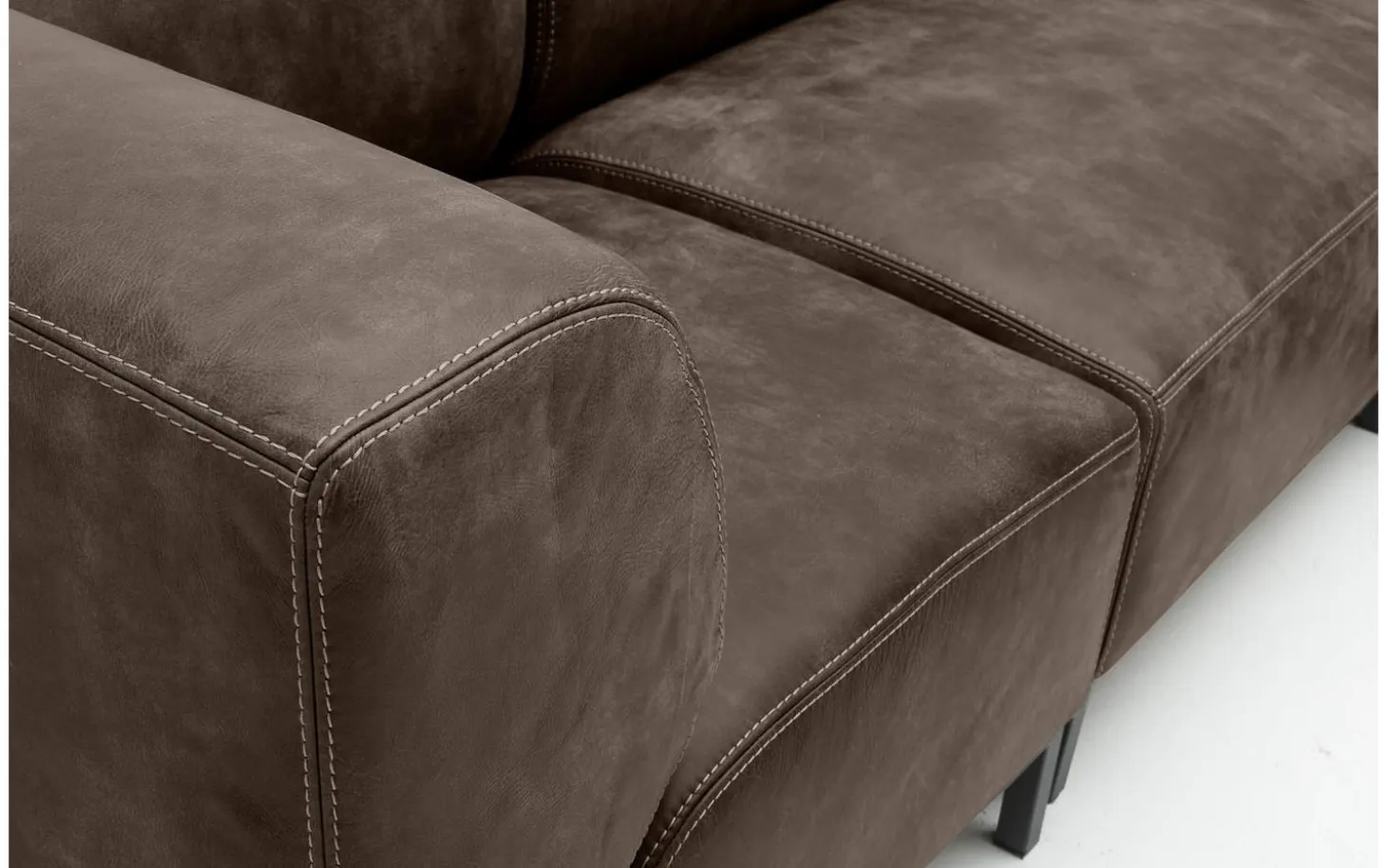 Bank Marshall is een stoere leren bank met prachtige fijne details. Dit heeft hij te danken aan de grove stiknaden, het buffalo leer en de slanke metalen poten. Het leer is licht opgeschuurd, waardoor het fluweelzacht aanvoelt. Het fijne aan buffalo leer is dat het alleen maar mooier wordt naarmate de jaren verstrijken. Doordat de zit- en rugkussens een vaste stoffering betreft, kunnen de kussens niet verschuiven. Marshall is een unieke bank in zijn soort, niet alleen door zijn uiterlijk maar ook door zijn opties. Je kan Marshall namelijk blijven vernieuwen qua opstelling, bijvoorbeeld door een nieuw koppelelement of een hocker toe te voegen. De vering is van hoogwaardig nosagvering met als afdeklaag luxafoamvulling wat samen voor optimaal zitcomfort zorgt. De nosagvering is elektrische gehard, waardoor deze vering jaren mee kan zonder dat je in hoeft te leveren op kwaliteit. Een zeer kwalitatief hoogwaardige bank!