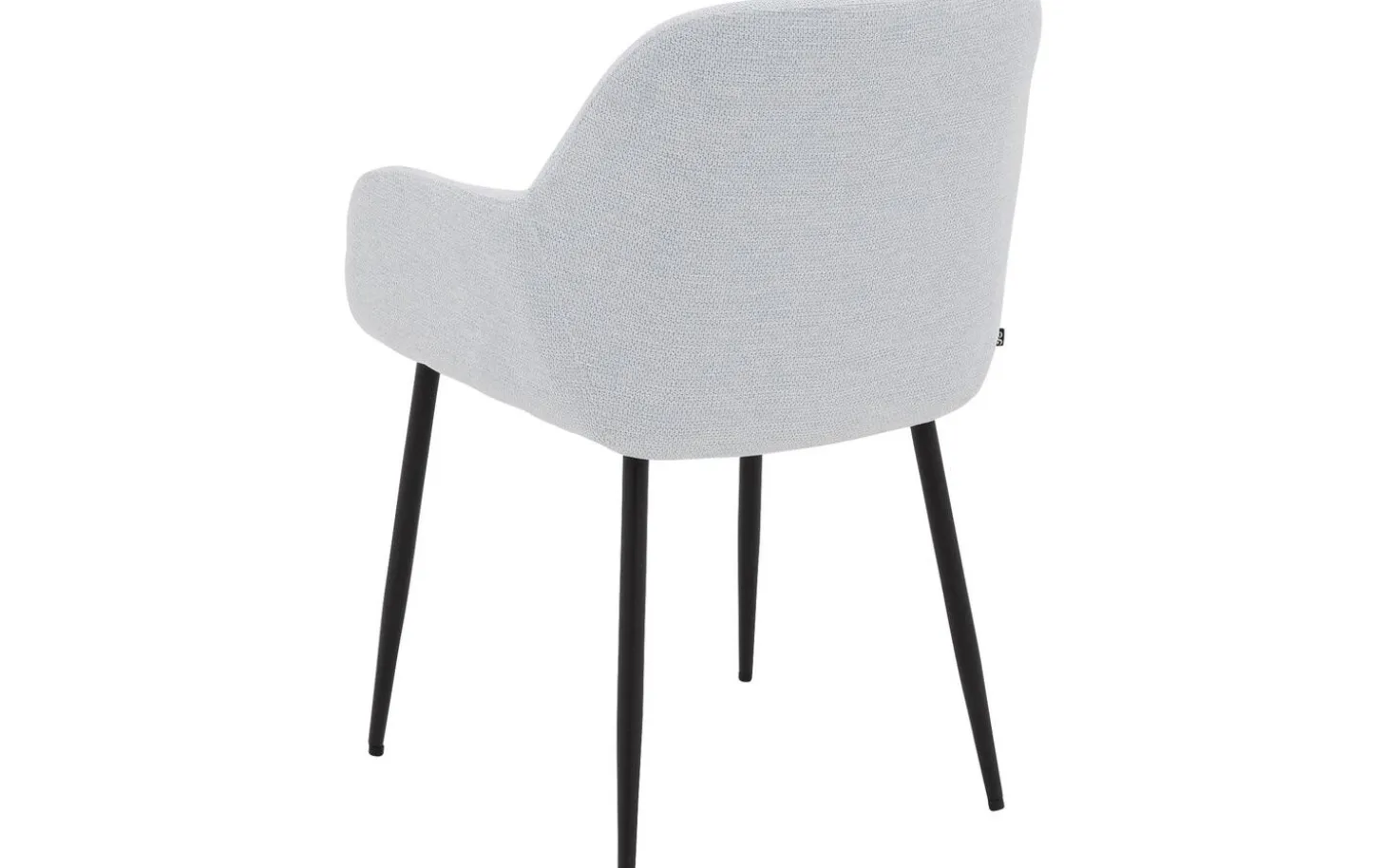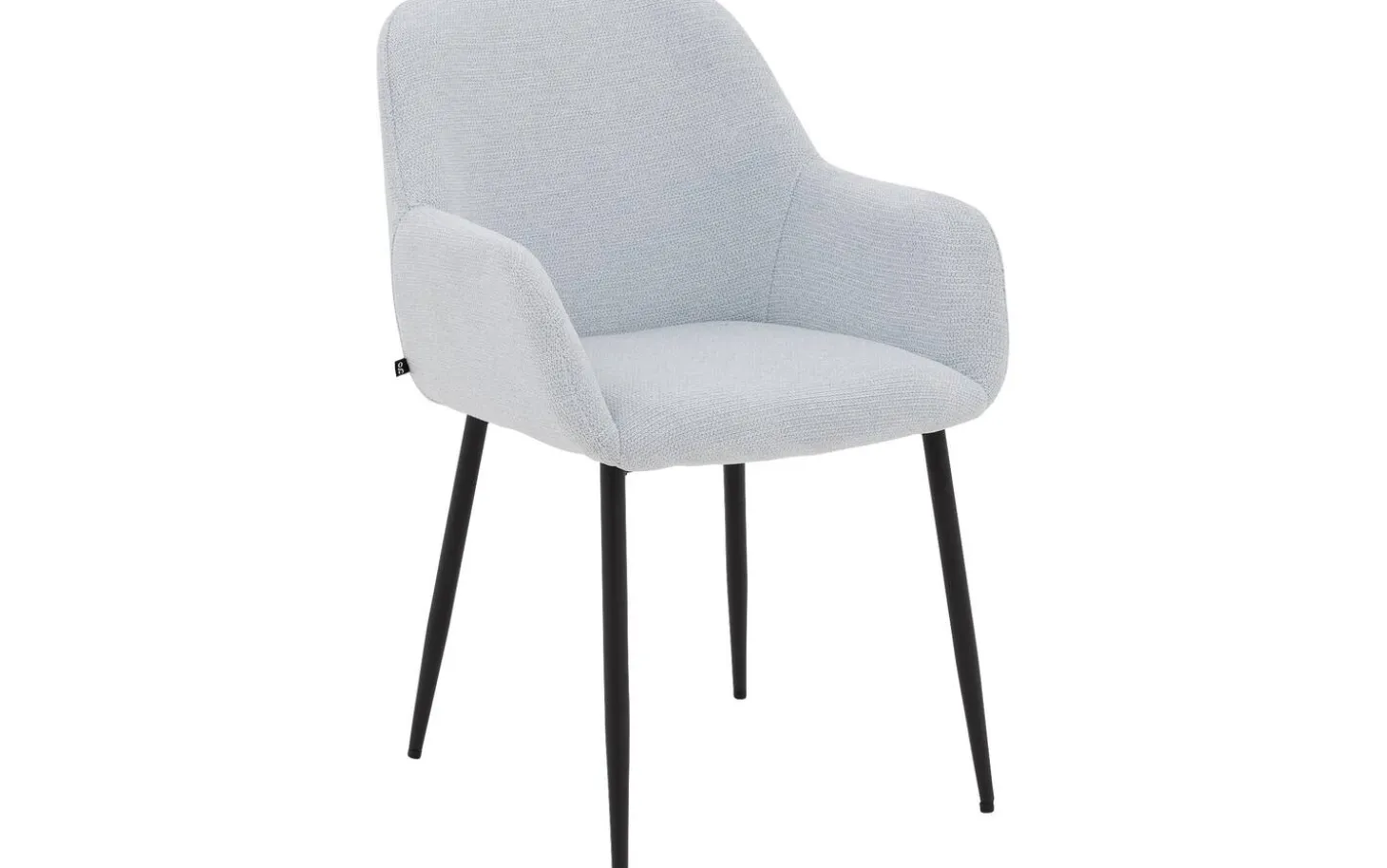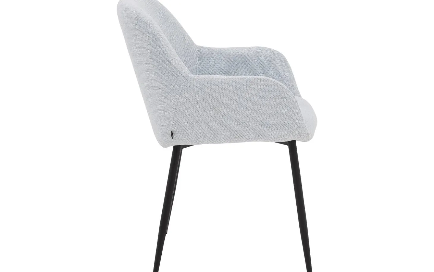 Der hellblaue fein gewebte Stoff verleiht diesem Stuhl eine frische Ausstrahlung. Die Schalenform mit der weichen Polsterung schafft einen einladenden Look, perfekt für einen gemütlichen Essbereich. Das schwarze Metallgestell mit Pulverbeschichtung bildet einen schönen Kontrast zum blauen Stoff und sorgt für Stabilität.