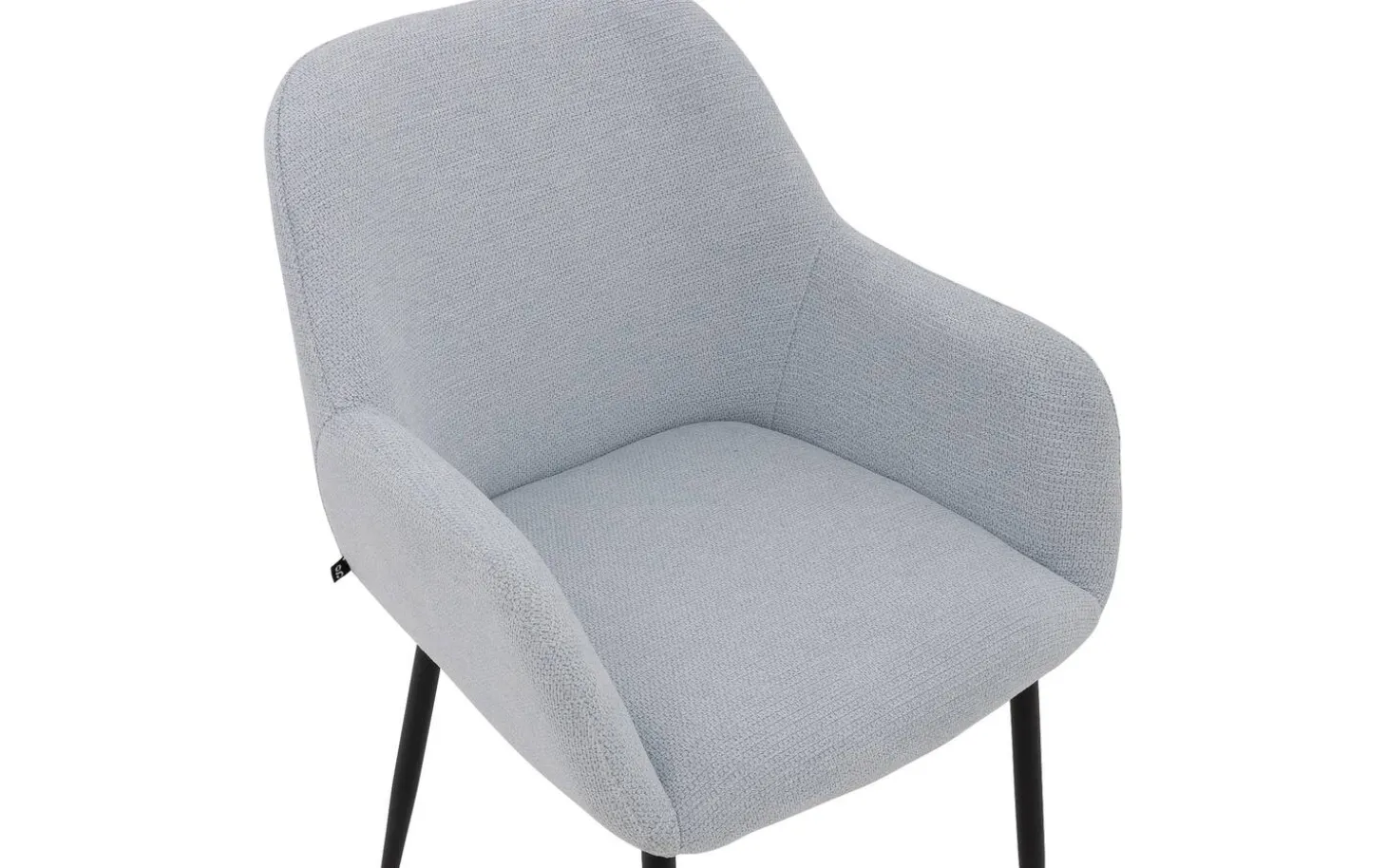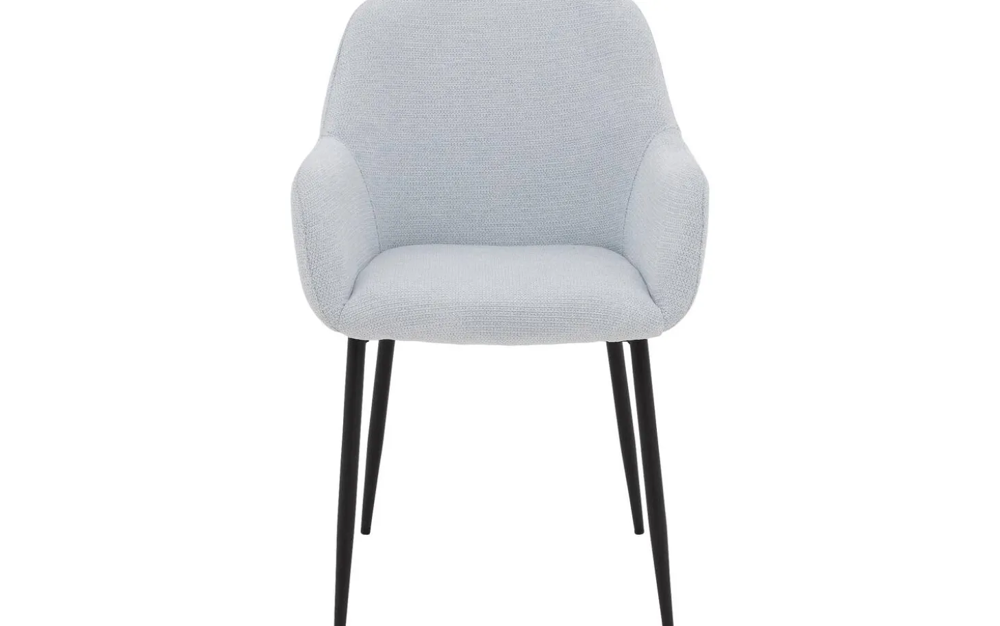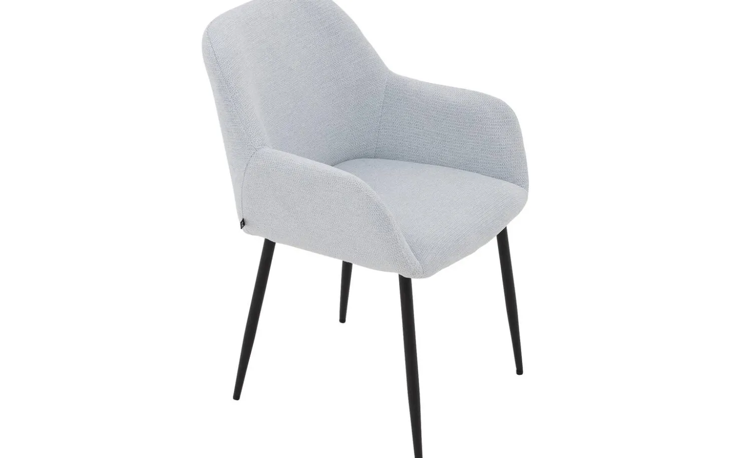 Der hellblaue fein gewebte Stoff verleiht diesem Stuhl eine frische Ausstrahlung. Die Schalenform mit der weichen Polsterung schafft einen einladenden Look, perfekt für einen gemütlichen Essbereich. Das schwarze Metallgestell mit Pulverbeschichtung bildet einen schönen Kontrast zum blauen Stoff und sorgt für Stabilität.