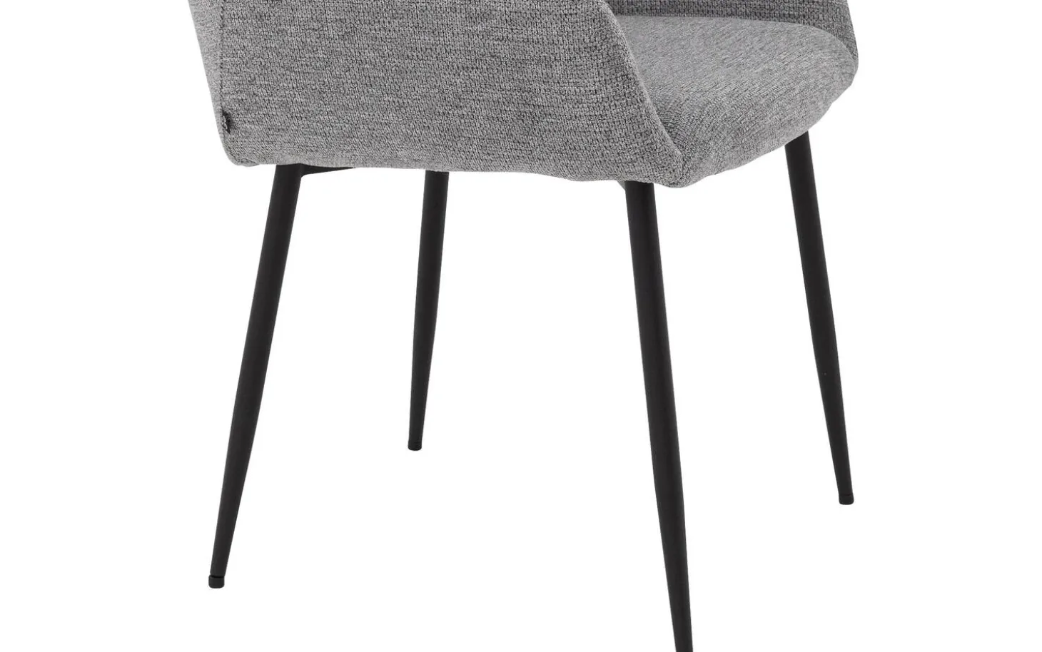 Der graue Esszimmerstuhl Anne mit Armlehne bietet ultimativen Komfort dank der hochwertigen Schaumstoffpolsterung. Dieser moderne Schalenstuhl aus fein gewebtem Stoff verleiht Ihrer Essecke sofort ein stilvolles Upgrade. Esszimmerstuhl Anne ist nicht nur ein Augenschmaus mit seiner trendigen grauen Farbe, sondern bietet auch praktischen Komfort während langer Essen. Das stabile Untergestell aus schwarz pulverbeschichtetem Metall sorgt für Stabilität und verleiht diesem vielseitigen Stuhl eine zeitgemäße Ausstrahlung.
