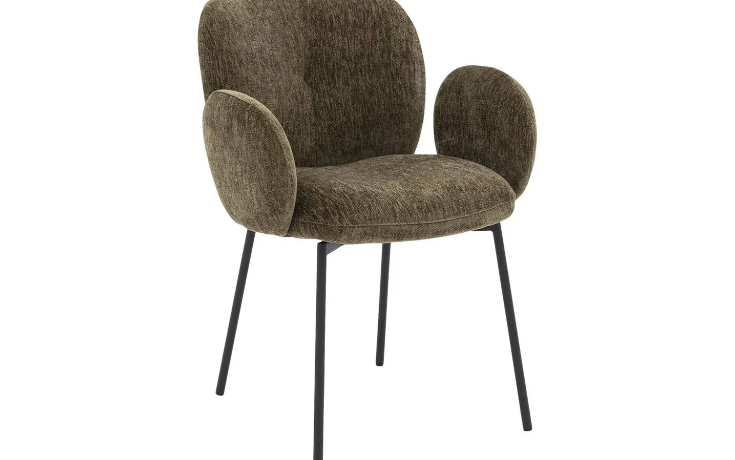 Der grüne Esszimmerstuhl Eller mit Armlehne bietet eine stilvolle Ergänzung für Ihr Esszimmer. Dieser feingewebte Stuhl aus Stoff zieht mit seinem modernen Design und seiner luftigen Ausstrahlung sofort die Aufmerksamkeit auf sich. Das schwarze Metallgestell verleiht dem Stuhl nicht nur Stabilität, sondern auch einen zeitgemäßen Look, der zu verschiedenen Einrichtungsstilen passt. Die grüne Polsterung fügt Ihrem Esszimmer eine frische, natürliche Note hinzu und sorgt für eine warme Atmosphäre während gemütlicher Essen.