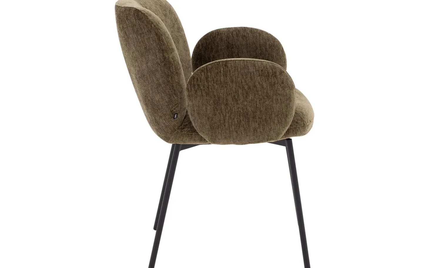 Stilvolle Details dieses grünen Esszimmerstuhls mit Armlehne
