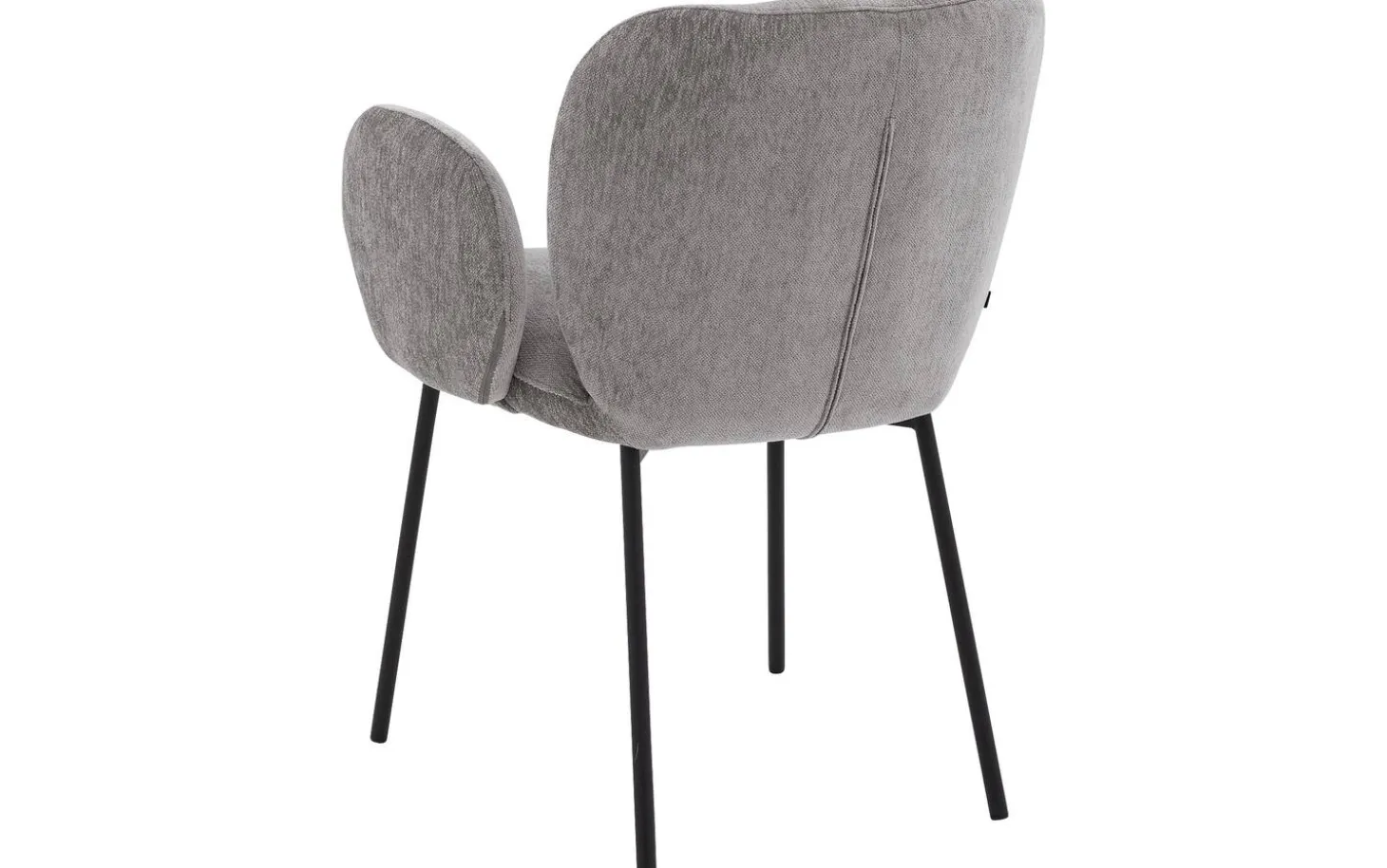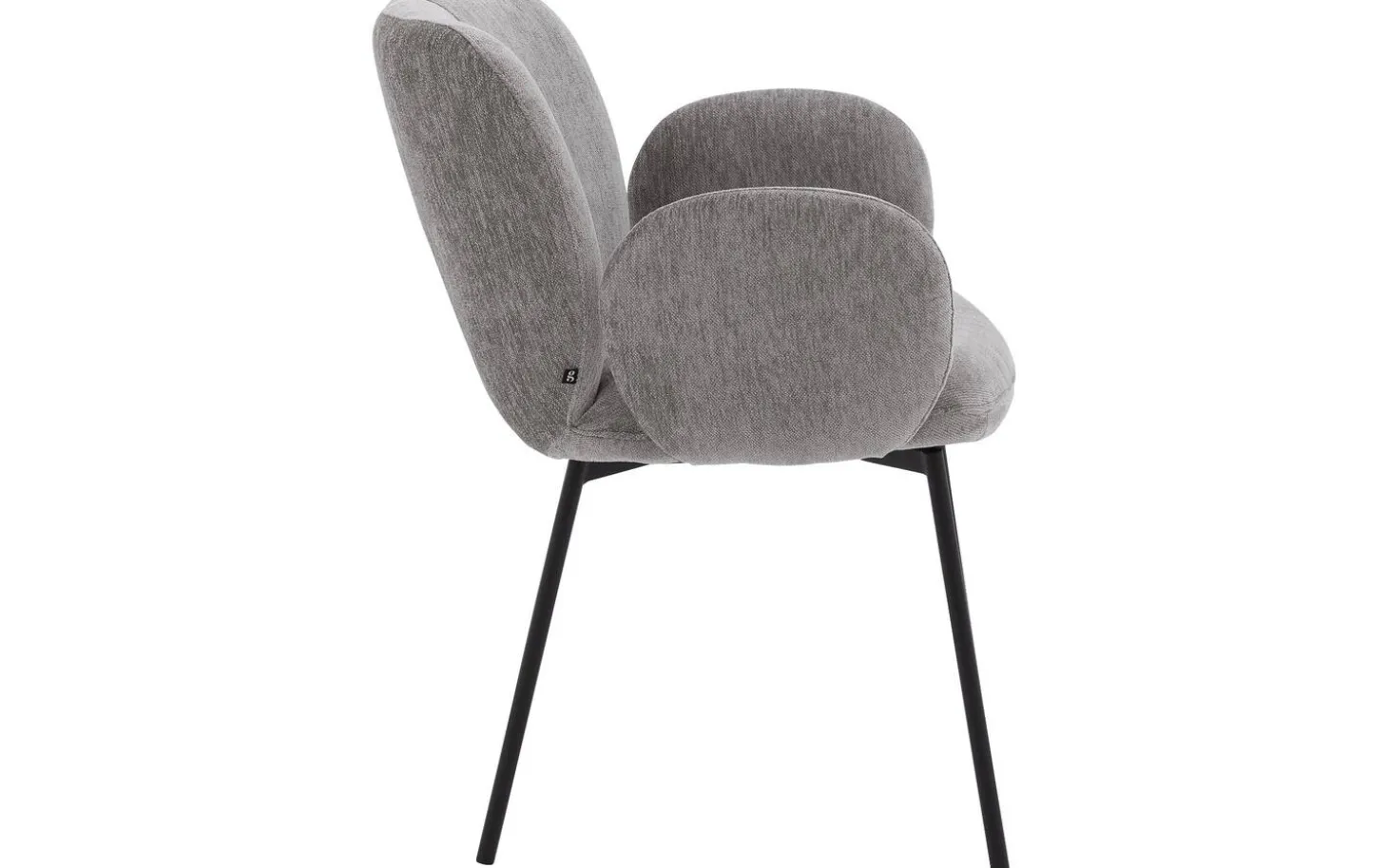 Das schwarze, pulverbeschichtete Metallgestell bildet einen schönen Kontrast zur taupefarbenen Polsterung und setzt ein stilvolles Akzent. Die feste Polsterung sorgt für einen klaren und modernen Look, der gut zu zeitgenössischen Interieurs passt. Durch die luftige Ausstrahlung ist dieser Stuhl auch perfekt für kleinere Räume geeignet.