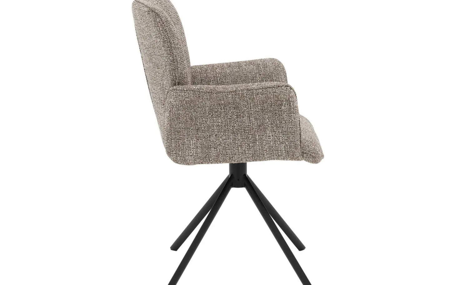 Das schwarze Untergestell mit Pulverbeschichtung bildet einen schönen Kontrast zur braunen Bezugspolsterung und verleiht dem Stuhl eine zeitgemäße Ausstrahlung. Das Sterngestell sorgt nicht nur für Stabilität, sondern ermöglicht auch die Drehbewegung, was diesen Esszimmerstuhl für den täglichen Gebrauch besonders funktional macht.
