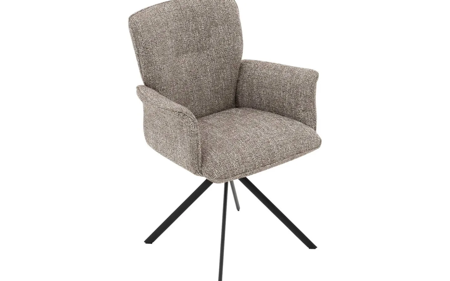 Entdecken Sie den braunen Esszimmerstuhl Hermes mit Armlehne. Dieser Stuhl kombiniert trendiges Design mit herrlichem Sitzkomfort dank der stilvollen Sitzschale, die mit einer subtilen Steppung in der Rückenlehne versehen ist. Genießen Sie zusätzliche Bewegungsfreiheit mit dem drehbaren Sternfuß und machen Sie diesen Stuhl zu einem echten Blickfang in Ihrem Essbereich. Dank der 360-Grad-Drehfunktion mit Rückholfunktion können Sie leicht an den Tisch heran- und wieder wegfahren.