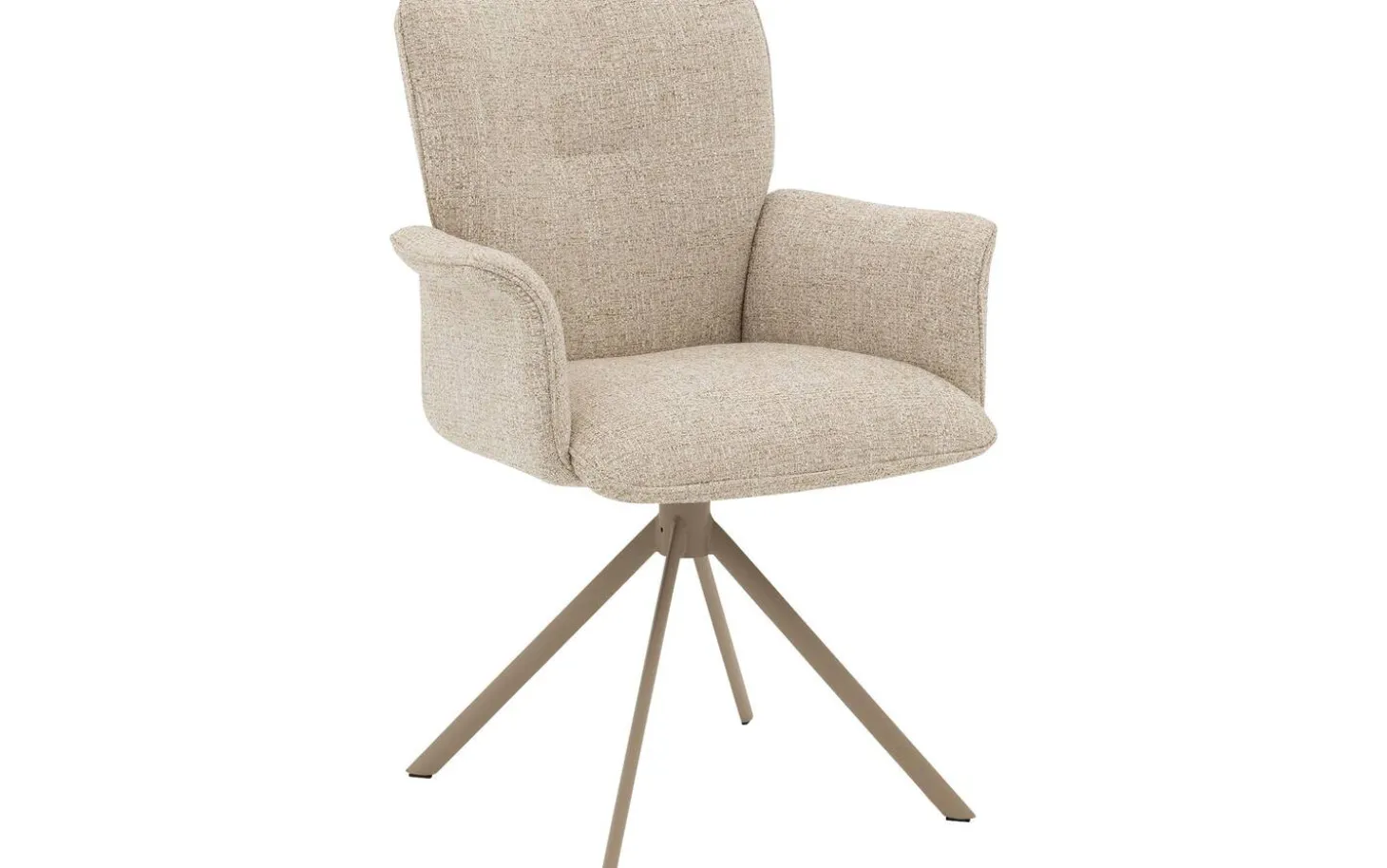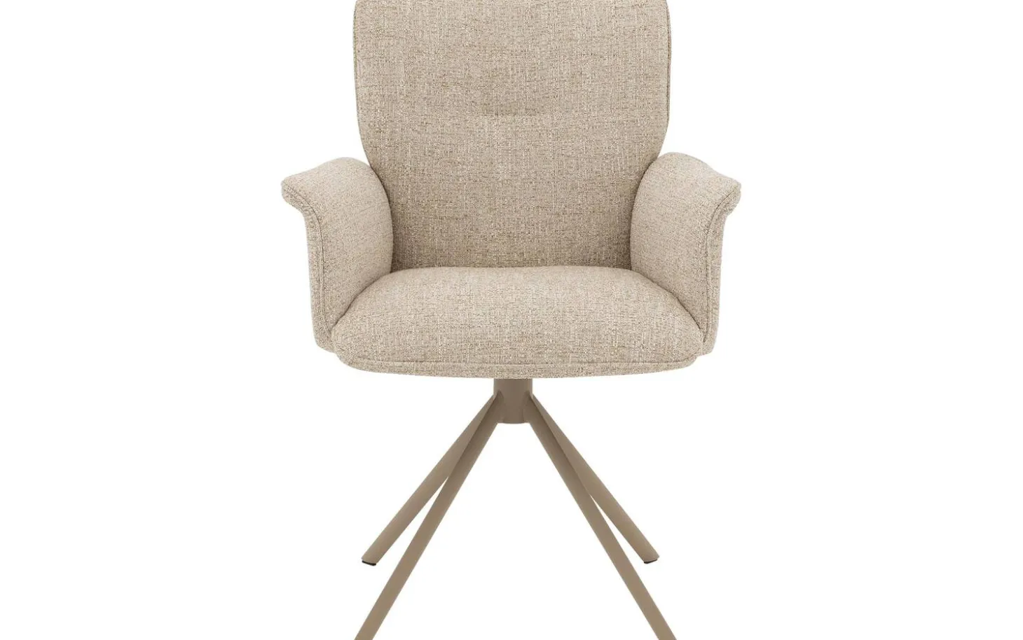 Die leichte, pulverbeschichtete Oberfläche im Naturton des Sternfußgestells bildet eine harmonische Einheit mit dem Bezug im Naturton. Diese Kombination sorgt für eine luftige und frische Ausstrahlung, die perfekt in moderne und skandinavische Einrichtungen passt. Der Stuhl ist 360° drehbar mit einer praktischen Rückholfunktion, wodurch der Stuhl immer ordentlich in die Ausgangsposition zurückkehrt.