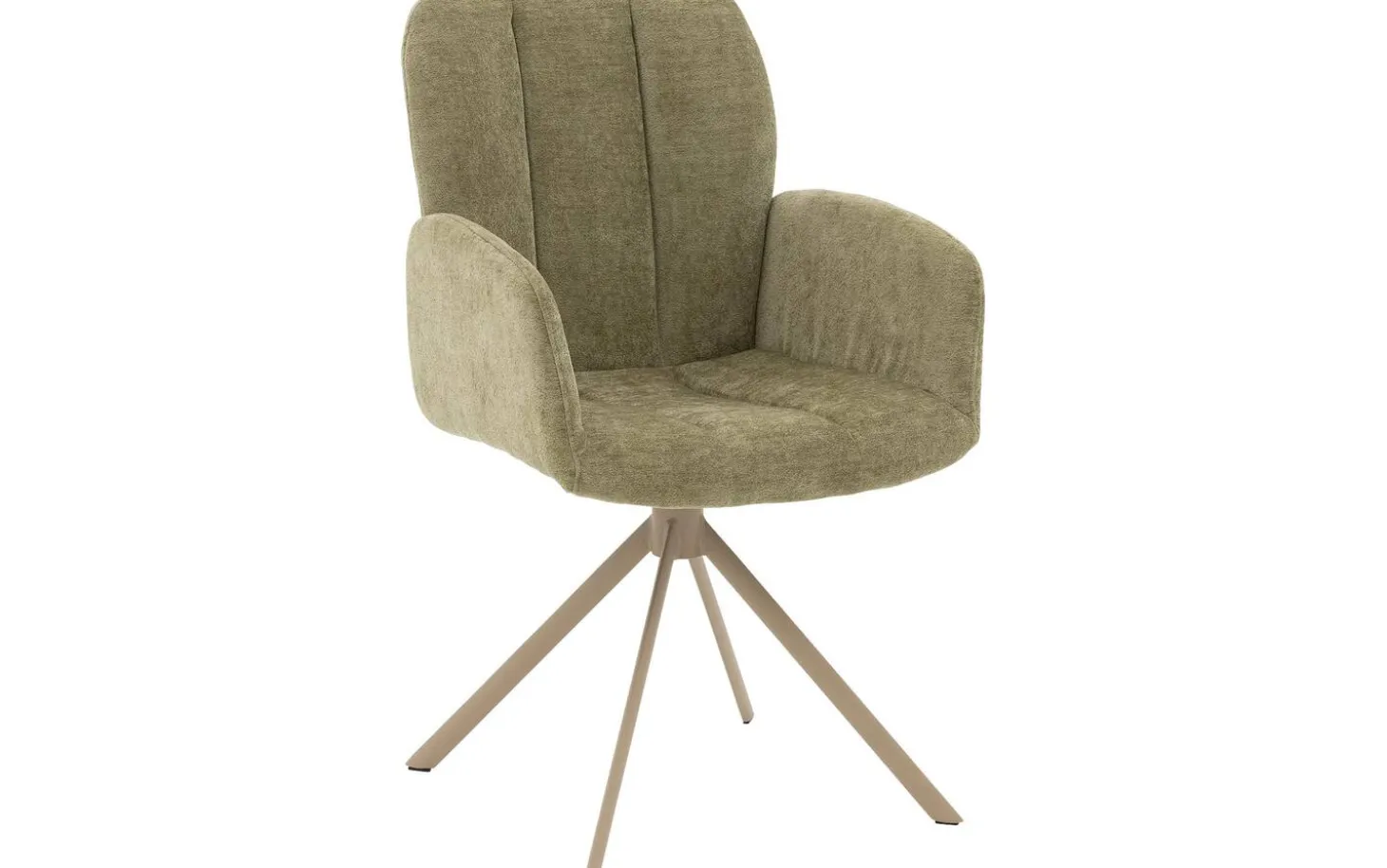 Der grüne Esszimmerstuhl Hestia mit Armlehne bringt trendiges Design in Ihr Esszimmer. Dieser stilvolle Stuhl aus Stoff in Pistaziengrün fällt sofort durch seine elegante Sitzschale mit vertikalen Nähten auf, die einen verspielten Akzent setzen. Dank des 360° drehbaren Sternfußes mit Rückholfunktion haben Sie beim Essen alle Bewegungsfreiheit. Der Fuß im Naturton bildet einen wunderschönen Kontrast zum frischen grünen Stoff, was diesen Esszimmerstuhl zu einem echten Blickfang in jedem Esszimmer macht.