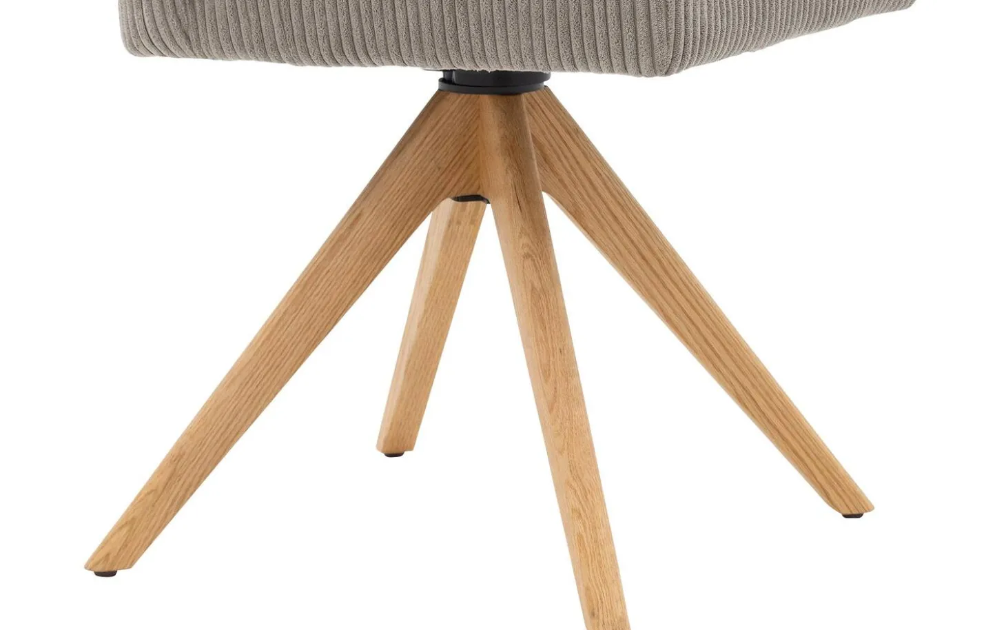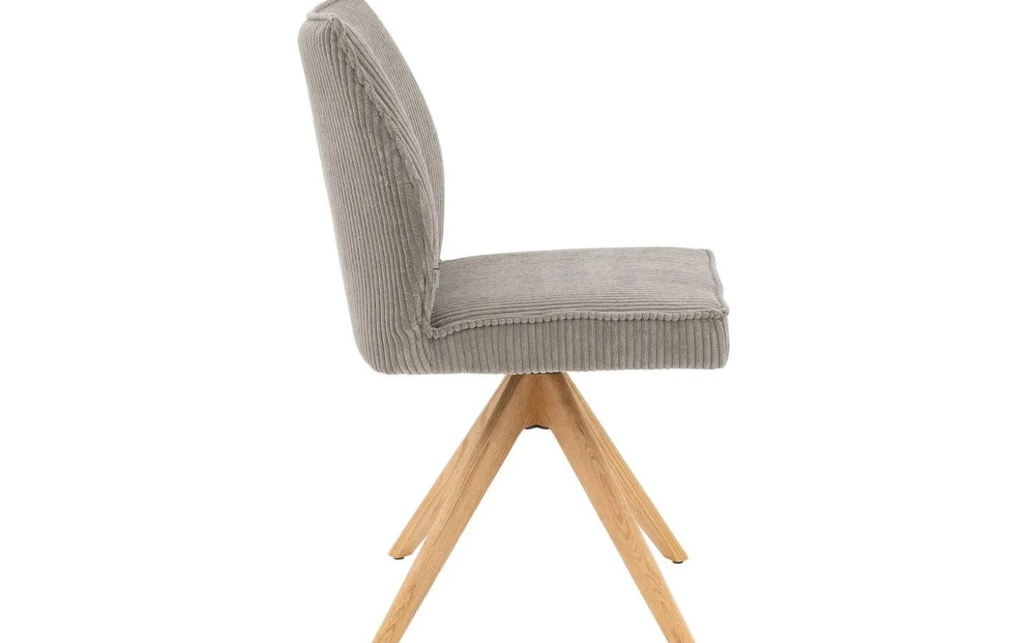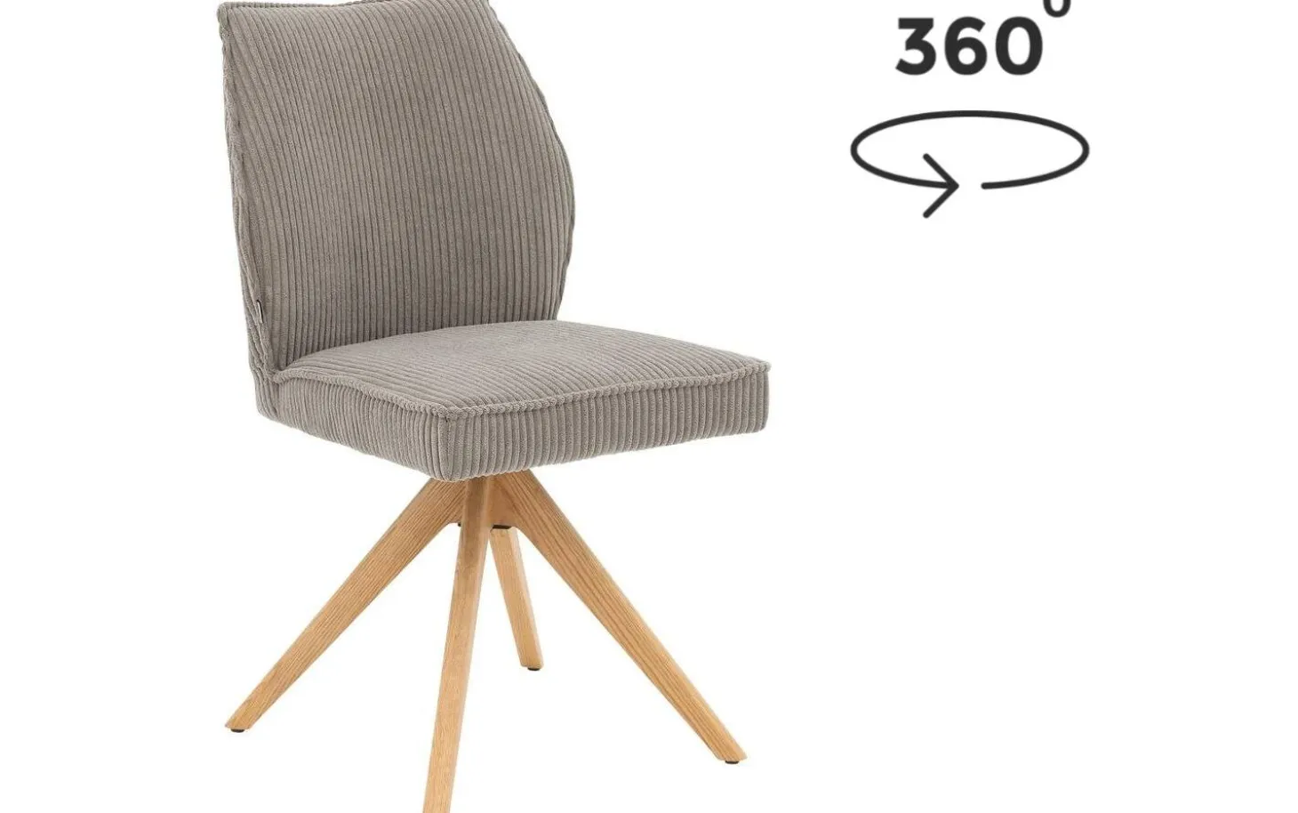 Der graue Esszimmerstuhl Laurens ohne Armlehne strahlt Komfort und Stil in Ihrem Esszimmer aus. Dieser hellgraue Esszimmerstuhl aus Rippenstoff ist um 360 Grad drehbar mit praktischer Rückholfunktion, wodurch Sie sich bequem hinsetzen und aufstehen können. Die warme Ausstrahlung des blank lackierten Eichenholzuntergestells kombiniert wunderbar mit dem weichen Rippenstoff, perfekt für gemütliche Essen mit Freunden und Familie.
