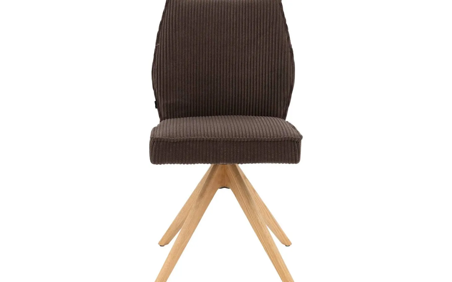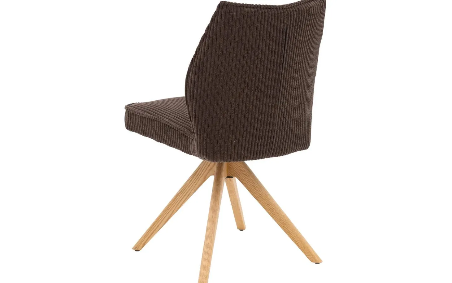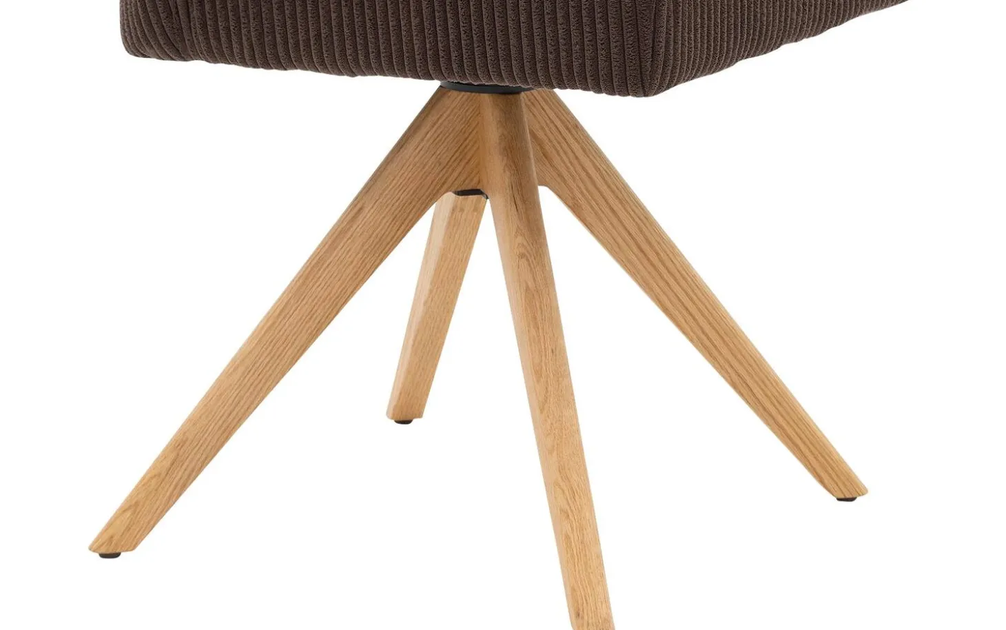 Endlos tafeln mit Esszimmerstuhl Laurens. Dieser braune Esszimmerstuhl ohne Armlehne verbindet Stil und Komfort in einem vielseitigen Design. Der warme Cordstoff-Bezug verleiht Ihrem Esszimmer sofort eine gemütliche Ausstrahlung, während das naturbelassene Eichenholzgestell für eine natürliche Note sorgt. Dank der 360°-Drehfunktion mit Return-Mechanismus können Sie sich leicht an den Tisch setzen und aufstehen, ohne den Stuhl zu verschieben.