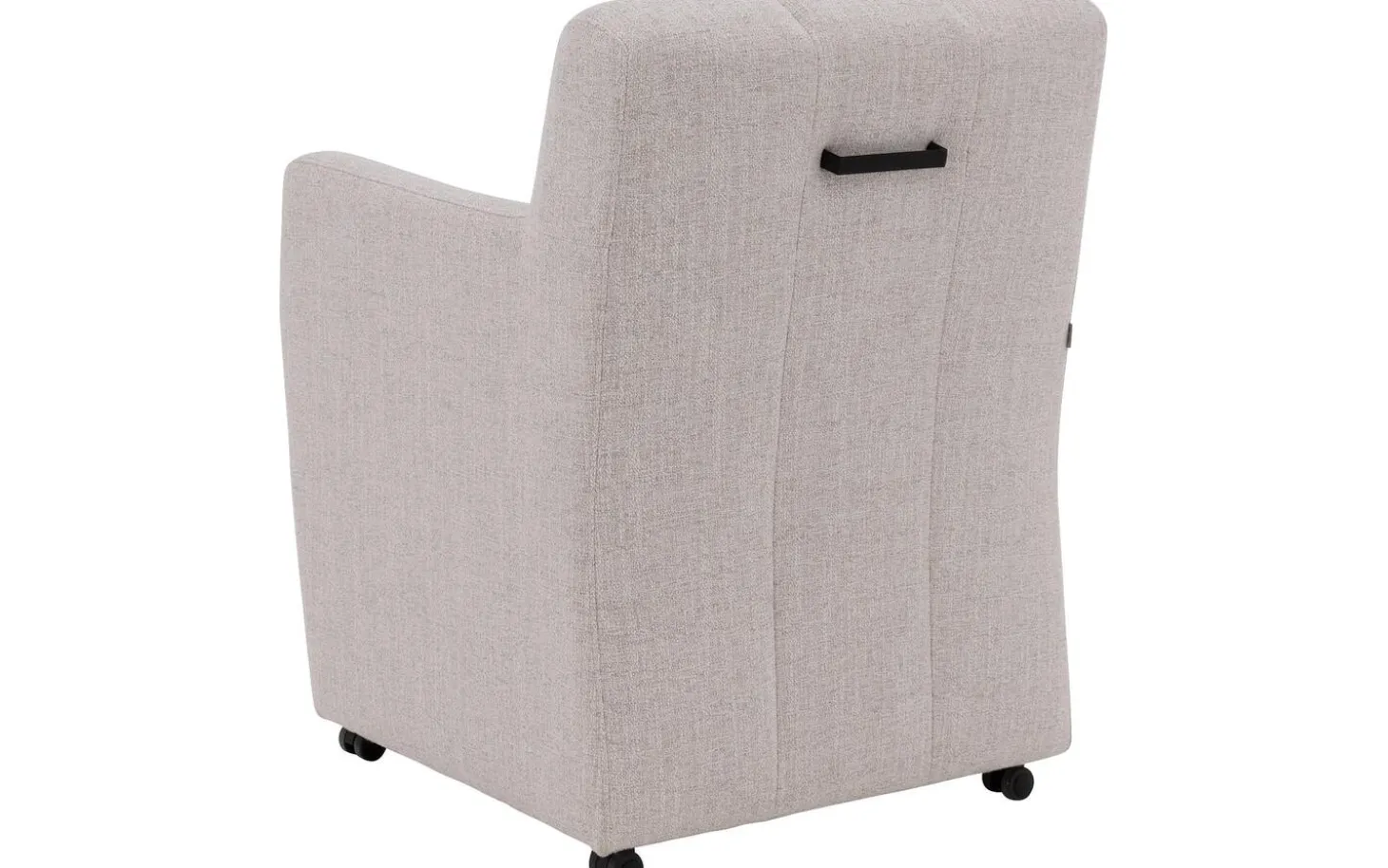 Der weiße Esszimmerstuhl Lewise mit Armlehne bringt Stil und Komfort an Ihren Esstisch. Dieser Stuhl aus Stoff fällt durch sein einzigartiges Design mit vertikalen Nähten an der Rückenlehne auf, was ihm eine zeitgemäße Ausstrahlung verleiht. Der natürliche, melierte weiße Stoff kombiniert perfekt mit verschiedenen Einrichtungsstilen und verleiht Ihrem Esszimmer eine warme Ausstrahlung. Dank der praktischen Rollen und des Handgriffs können Sie leicht an den Tisch heranrücken und wieder aufstehen.