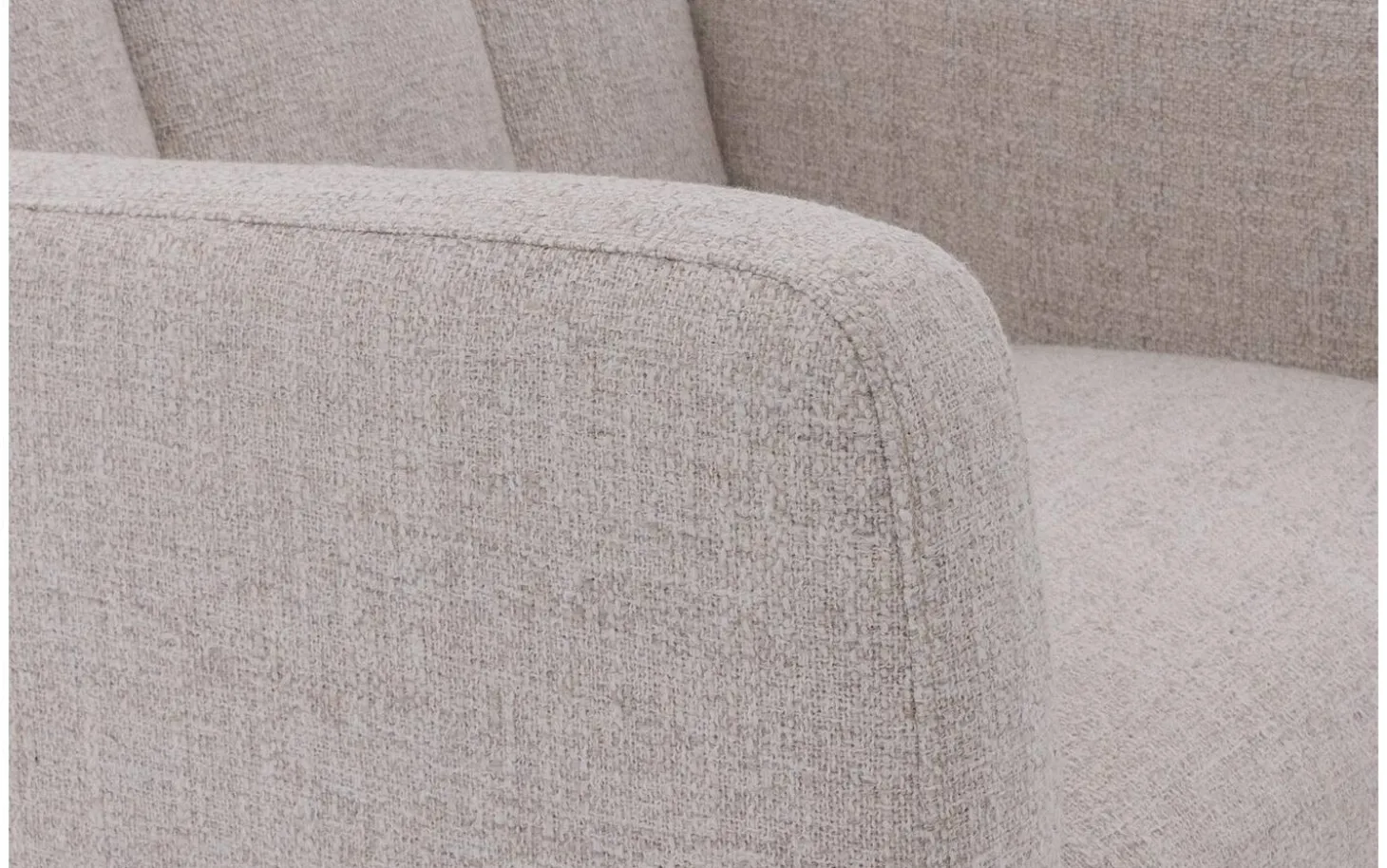 Der grob gewebte, melierte Stoff im Naturton verleiht dem Lewise eine reiche Textur, die Wärme in Ihr Esszimmer bringt. Die vertikalen Nähte an der Rückenlehne sorgen für einen zeitgemäßen Look, der sowohl modern als auch zeitlos ist. Der matt schwarze Handgriff bildet einen schönen Kontrast zur hellen Polsterung.