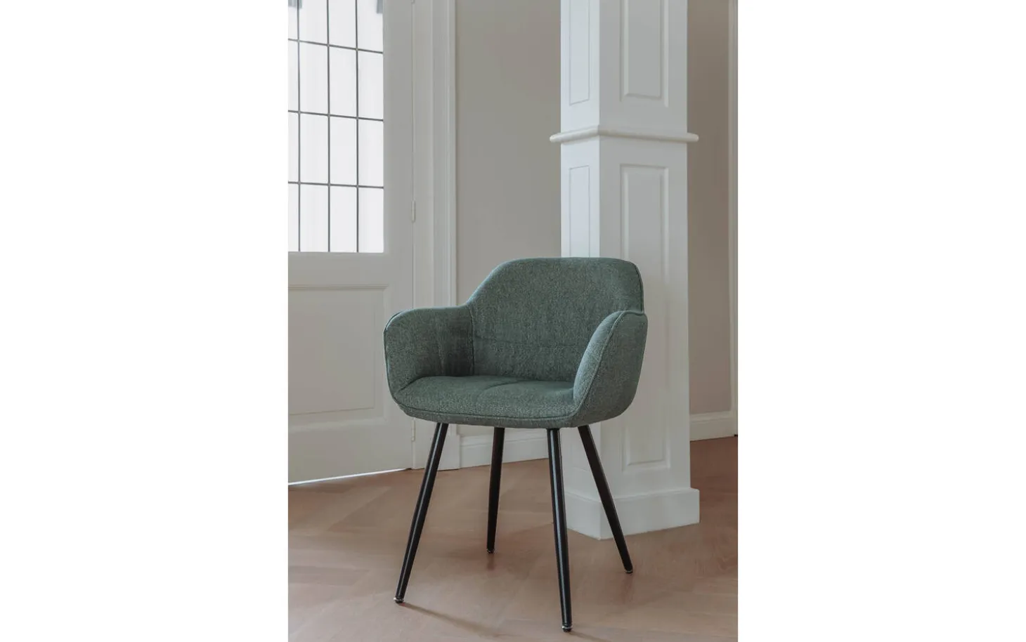 De fijn geweven groene stof geeft deze eettafelstoel een warme en frisse uitstraling die perfect past in verschillende interieurstijlen. Het sierstiksel aan de binnenkant van de kuip is een speels detail dat deze stoel net dat beetje extra geeft. De bekleding is geschikt voor zeer intensief gebruik, zodat je lang van je aankoop kunt genieten.