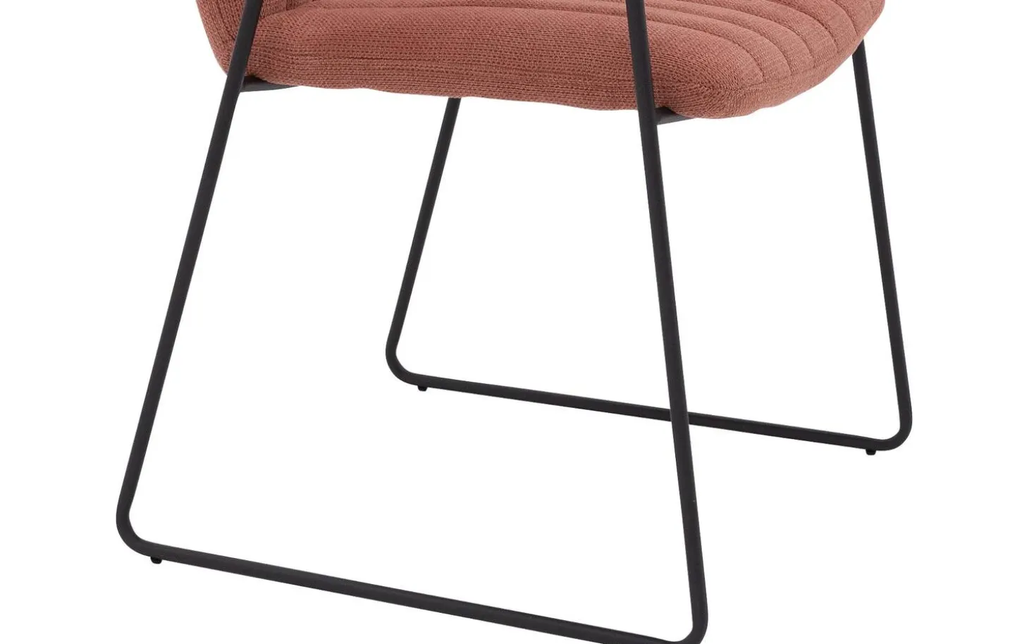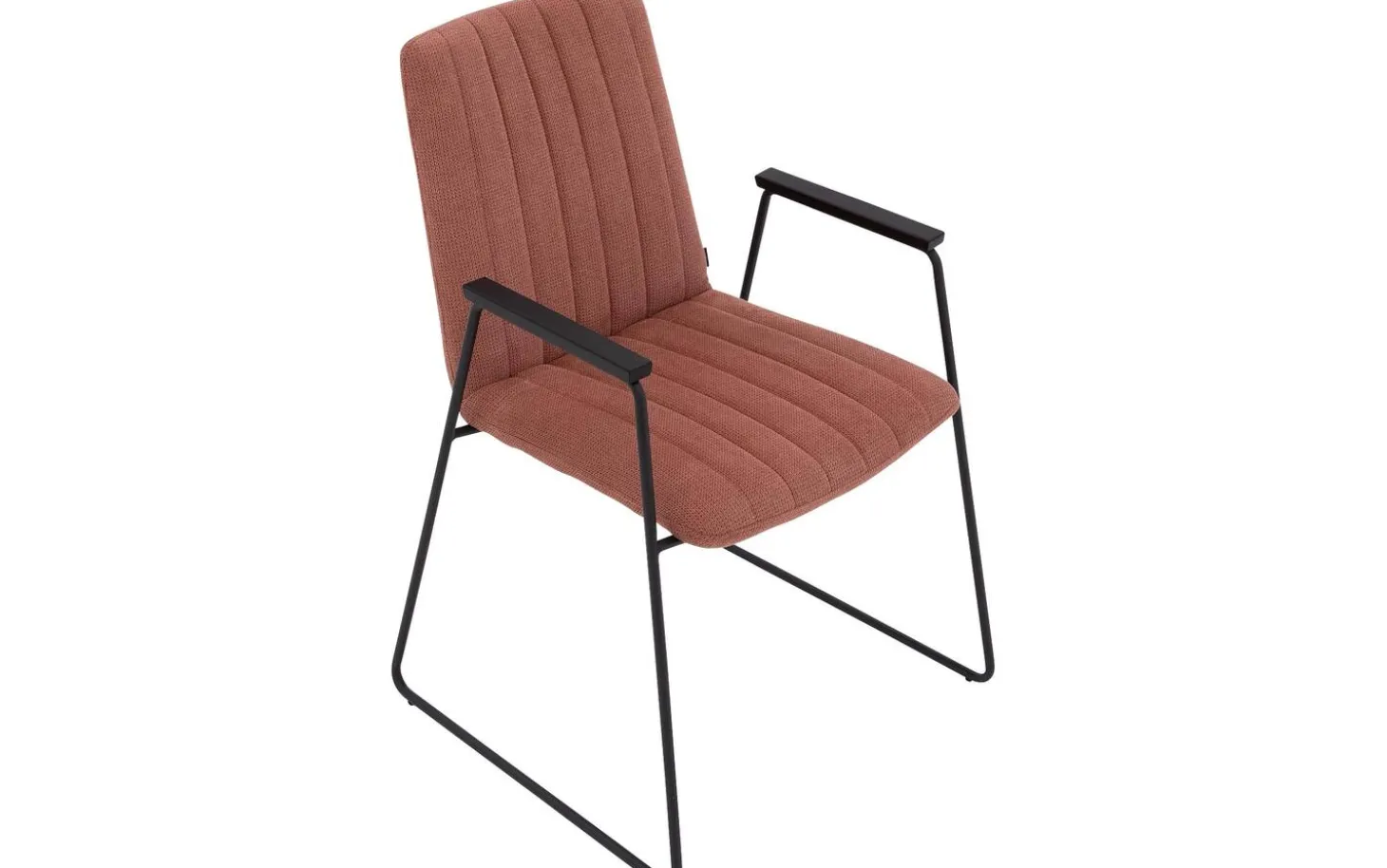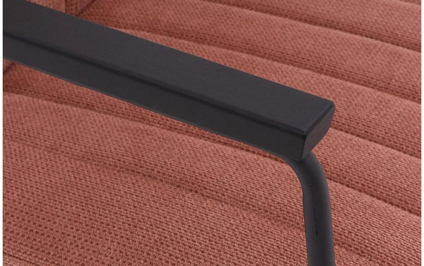 Eetkamerstoel Manta met armleuning combineert fijne lijnen met een grof geweven roze stoffering voor een moderne uitstraling. De kuip is vast gestoffeerd en verticaal gestikt, wat zorgt voor een unieke en strakke look. De ranke zwart metalen poot loopt naadloos over in de armleuning met fraaie armlegger. Met een armhoogte van 64 cm past deze eetstoel onder de meeste gangbare eettafels.