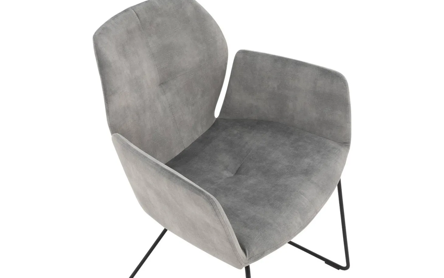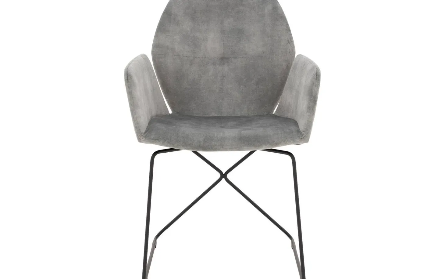 Entdecken Sie den grauen Esszimmerstuhl Manzini mit Armlehne, ein wunderschönes Designstück für Ihren Esstisch. Dieser Stuhl kombiniert modernes Design mit hervorragendem Komfort. Der stilvolle Sitzbereich mit subtiler Ziernaht an der Rückenlehne und dem schlanken schwarz pulverbeschichteten Gestell sorgen für eine räumliche Ausstrahlung. Manzini ist dadurch ein echter Blickfang in sowohl kleinen als auch großen Esszimmern. Die luxuriöse Velourspolsterung in Steel Grey verleiht diesem Stuhl eine warme und stimmungsvolle Note.