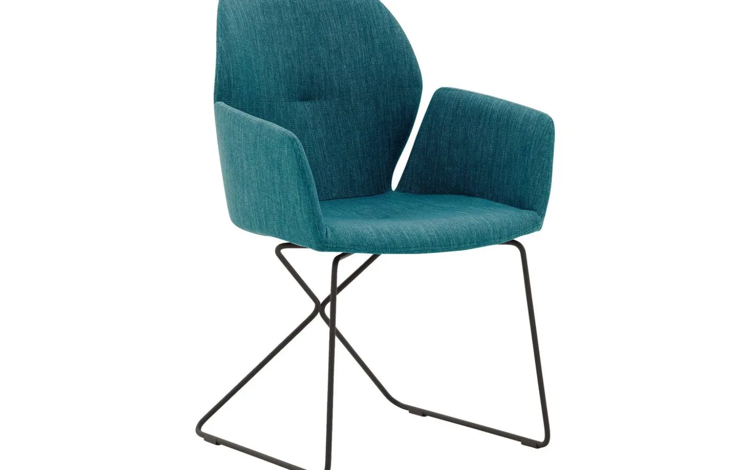 Der grüne Esszimmerstuhl Manzini mit Armlehne ist ein wunderschönes Designstück für Ihren Essbereich. Dieses moderne Sitzmöbel kombiniert eine komfortable Sitzfläche mit stilvollen Ziernähten an der Rückenlehne als subtiles Detail. Durch das schlanke, pulverbeschichtete schwarze Gestell erhält der Stuhl eine luftige Ausstrahlung, wodurch er sowohl in großen als auch in kleinen Esszimmern wunderbar zur Geltung kommt. Der fein gewebte türkisfarbene Bezug verleiht diesem Esszimmerstuhl einen frischen und zeitgemäßen Look.
