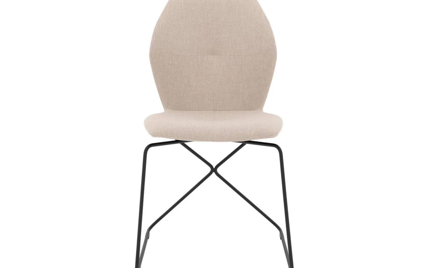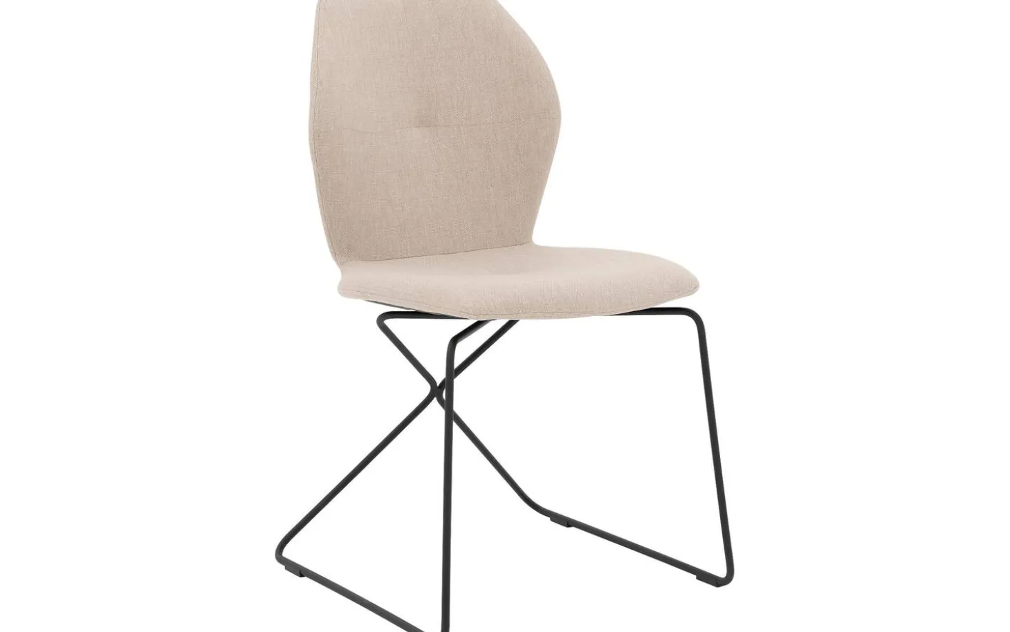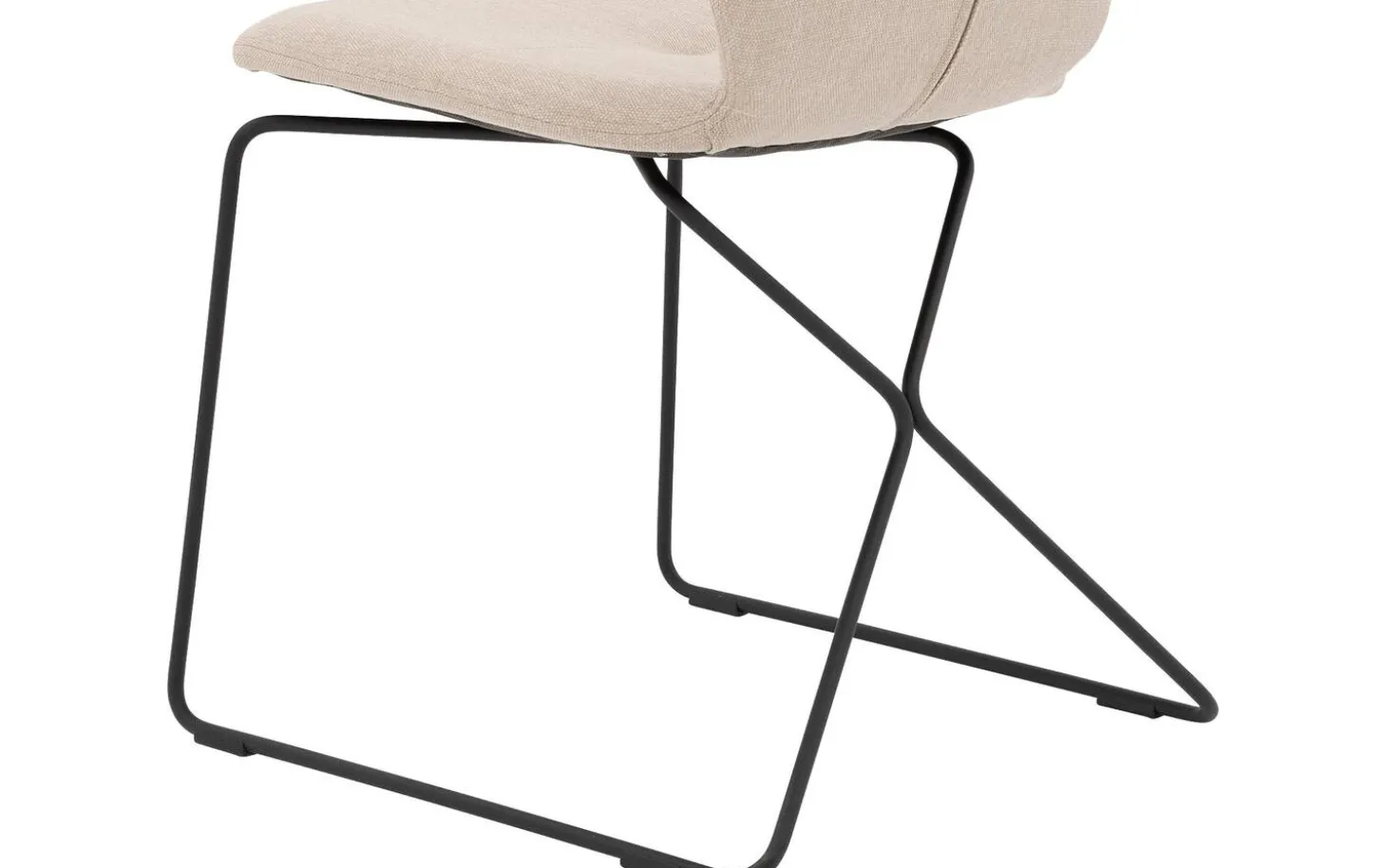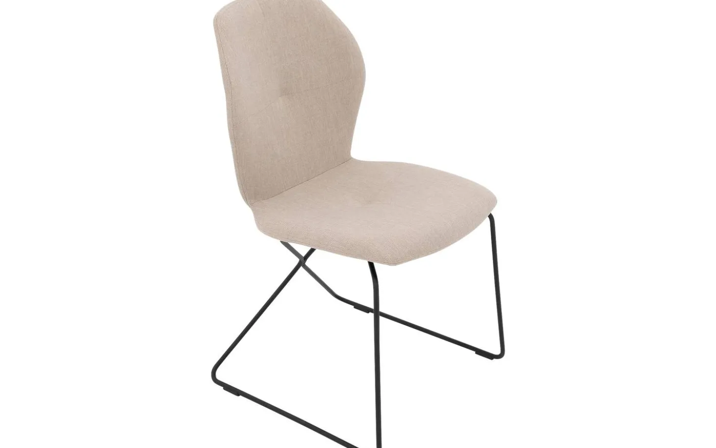 Das minimalistische Design des Esszimmerstuhls Manzini zeichnet sich durch das schlanke schwarze Metallgestell aus, das einen schönen Kontrast zur beigen Polsterung bildet. Die feste Polsterung sorgt für eine klare und moderne Ausstrahlung, die lange schön bleibt. Das fein gewebte Material fühlt sich angenehm an und ist langlebig im Gebrauch.