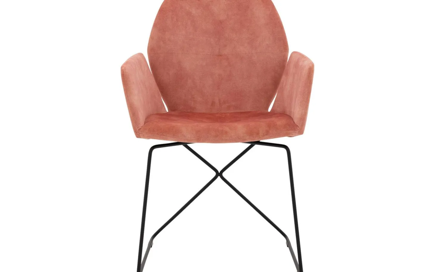 Betrachten Sie den Esszimmerstuhl Manzini! Dieser rosafarbene Esszimmerstuhl mit Armlehne ist ein wunderschönes Designstück mit komfortabler Sitzfläche. Die Velours-Polsterung verleiht Ihrer Essecke eine stilvolle Note, während das schlanke schwarze Gestell für eine moderne und luftige Ausstrahlung sorgt. Dank der stilvollen Ziernaht an der Rückenlehne hat Manzini genau jenes kleine, aber feine Detail, das den Unterschied in Ihrem Interieur ausmacht.