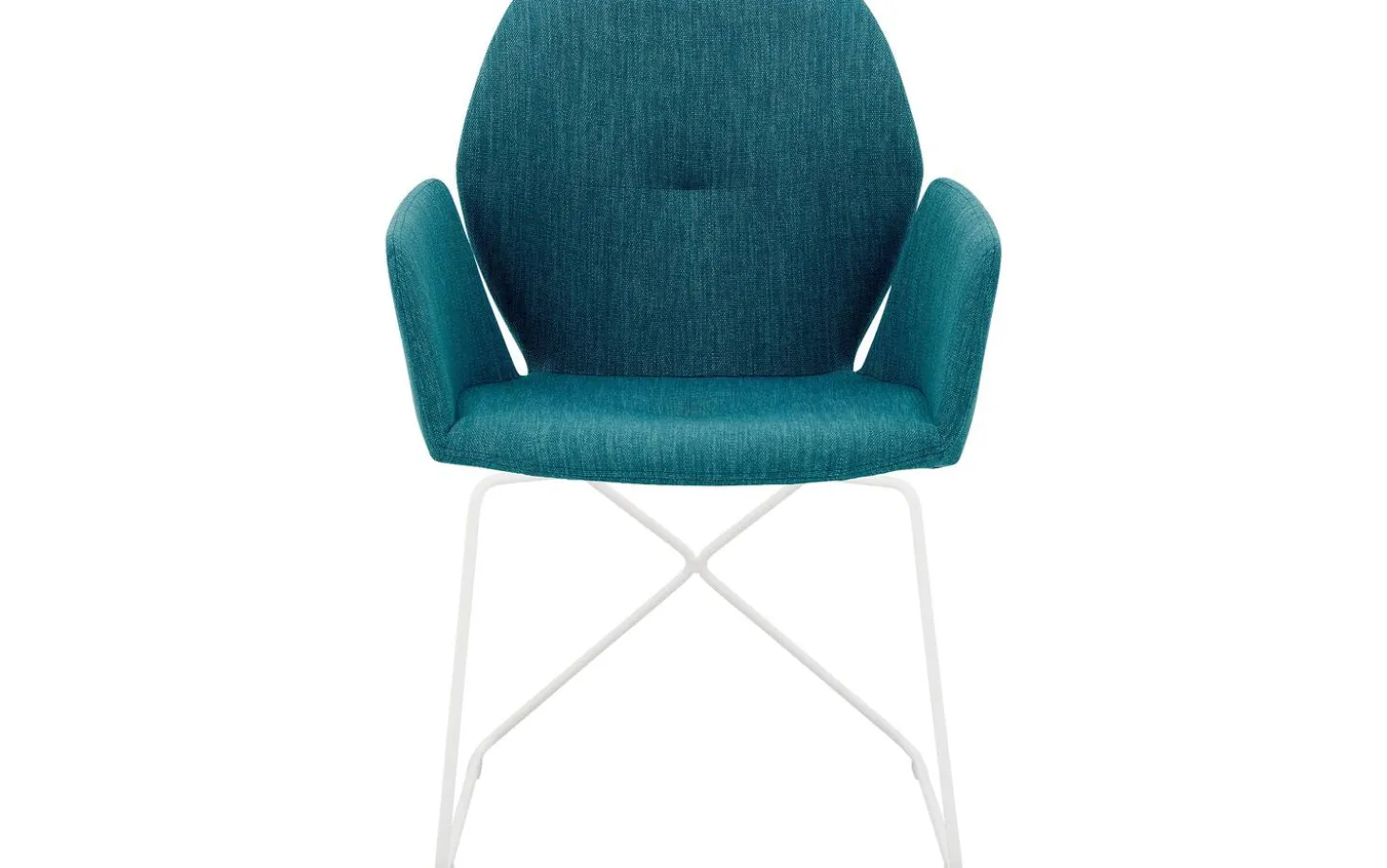Der grüne Esszimmerstuhl Manzini mit Armlehne hat eine moderne Designausstrahlung mit einem komfortablen Sitz. Das räumliche Design kombiniert eine fein gewebte türkisfarbene Stoffbespannung mit einem schlanken weiß pulverbeschichteten Untergestell. Ein subtiles Detail ist die stilvolle Ziernaht an der Rückenlehne, die diesem Esszimmerstuhl das gewisse Extra verleiht. Durch seine zurückhaltende Ausstrahlung passt Manzini sowohl in große als auch in kleine Esszimmer.
