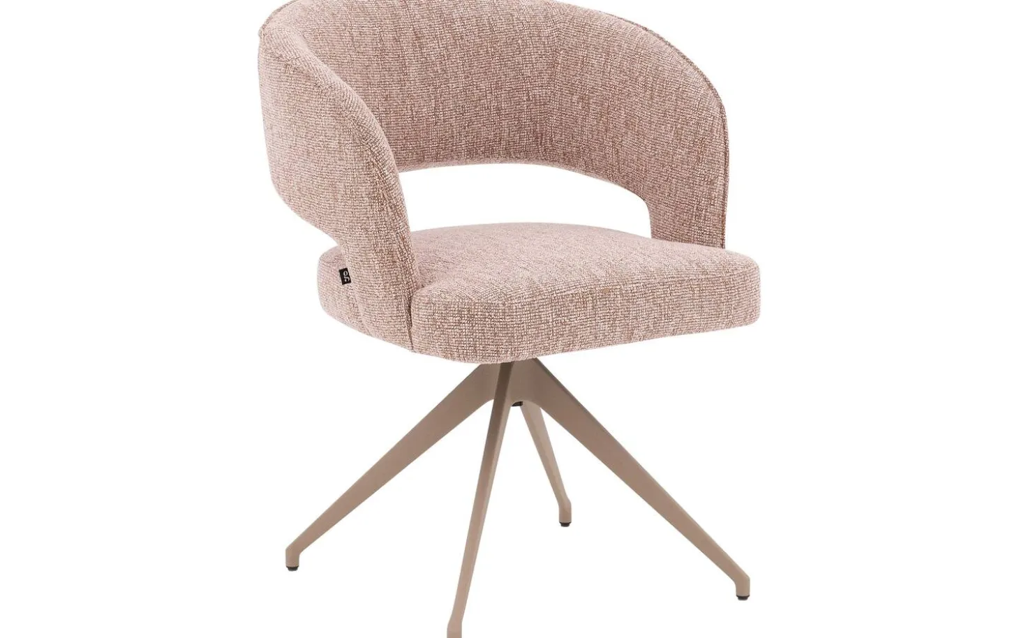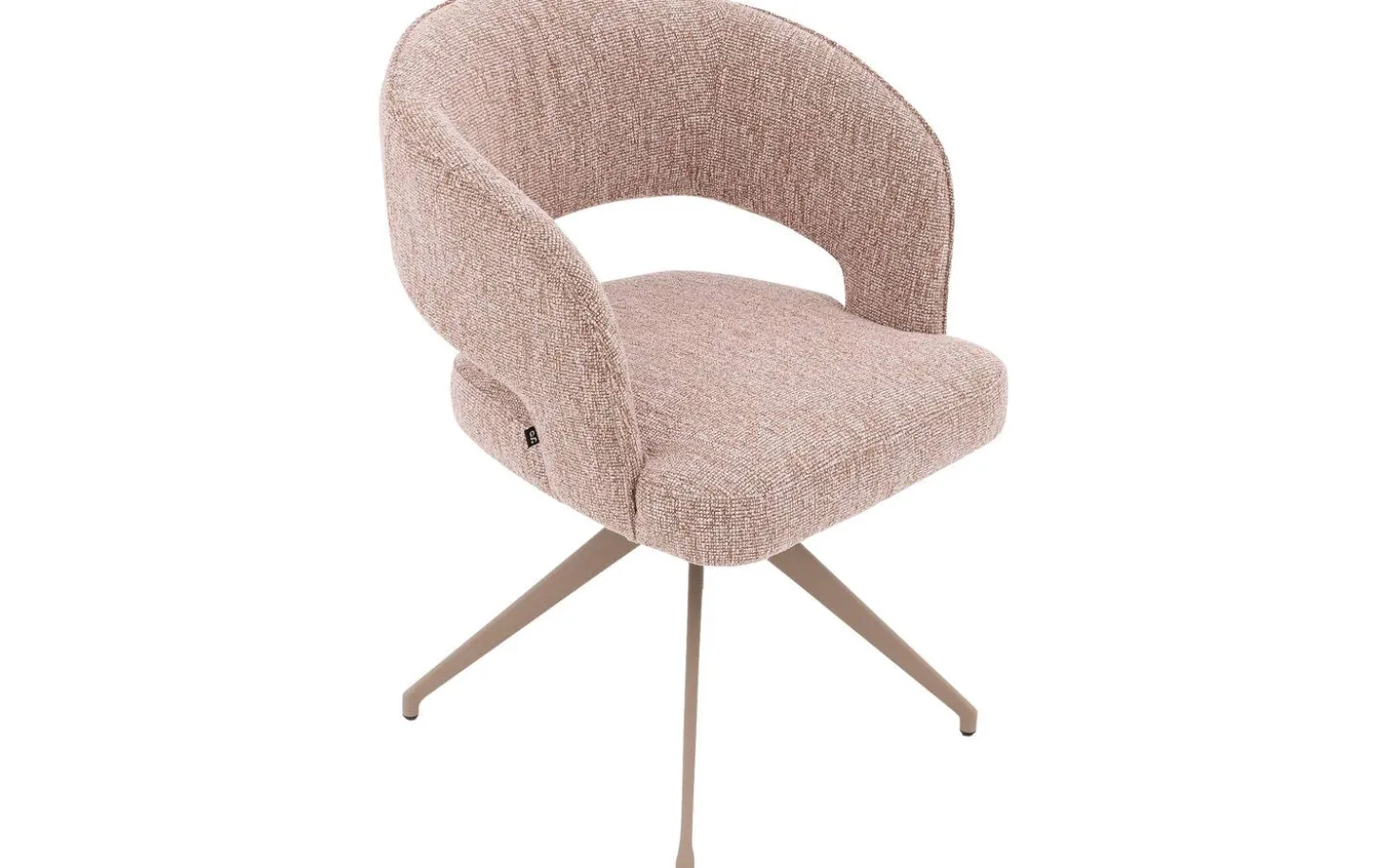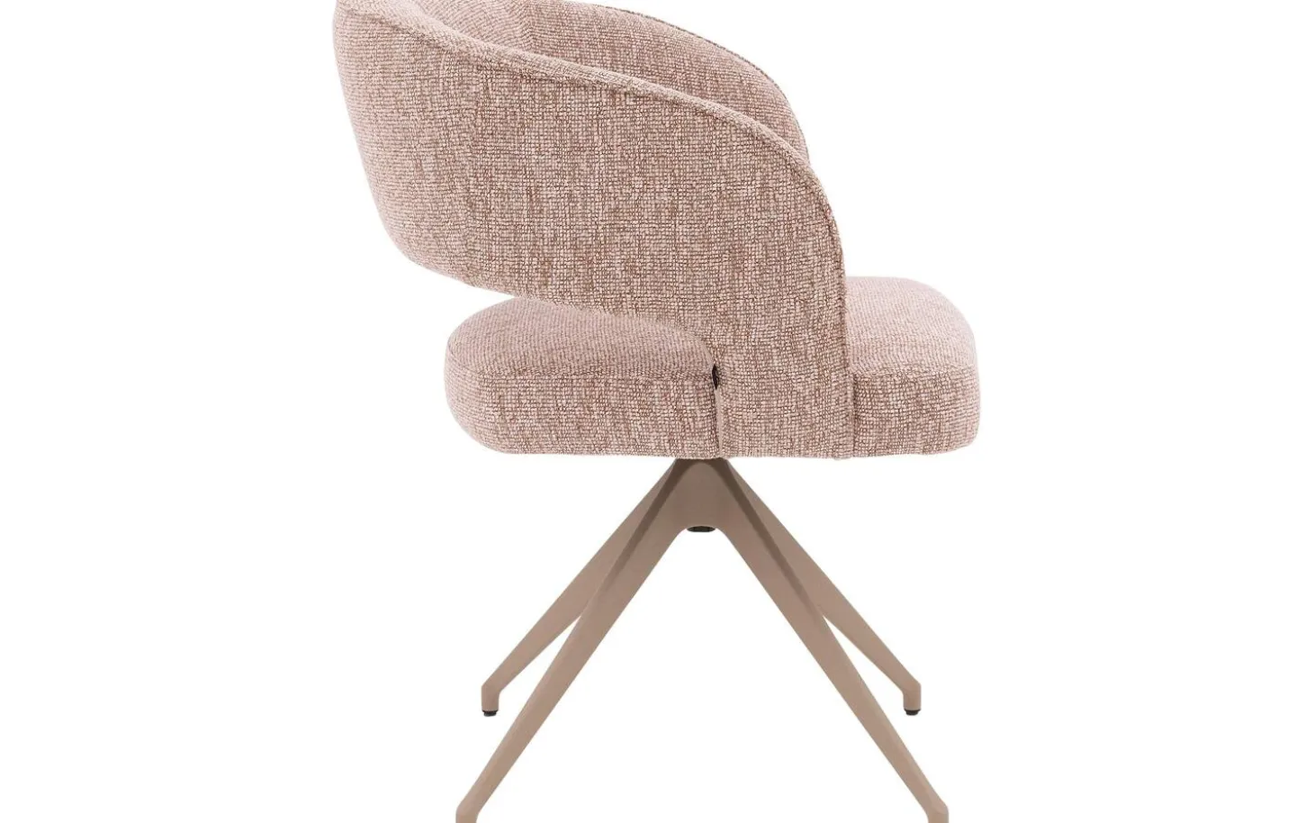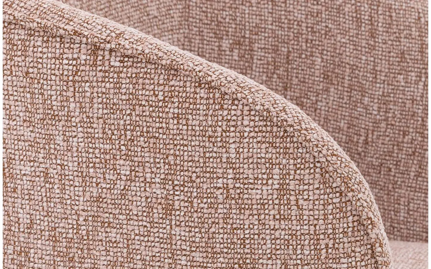 Der grob gewebte rosafarbene Stoff verleiht diesem Stuhl eine warme und einladende Ausstrahlung. Das melierte Blossom-Muster fügt eine subtile Textur hinzu, die für Tiefe und Charakter sorgt. Die Armlehnen sind mit einer eleganten Paspel versehen, was diesem Stuhl das gewisse Extra verleiht.