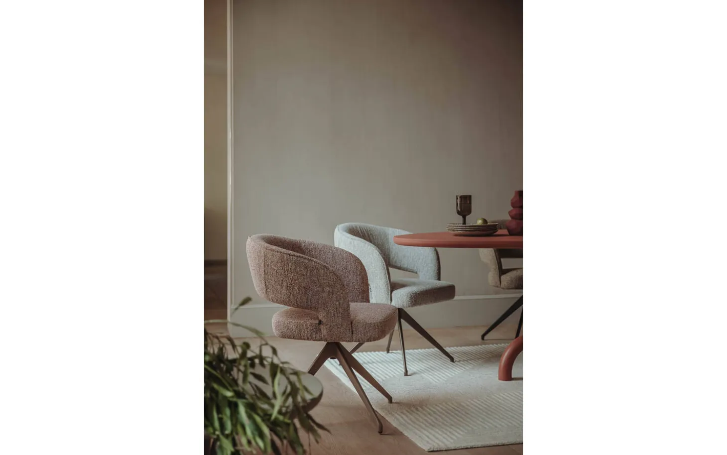 Das Gestell mit Pulverbeschichtung im Naturton bildet einen stilvollen Kontrast zum rosafarbenen Stoff. Dank der festen Polsterung behält Ostuni jahrelang sein schlichtes und modernes Aussehen. Dieser in den Niederlanden produzierte Qualitätsstuhl wird mit viel Liebe zum Detail hergestellt – genau das, was Sie von Goossens Wohnen erwarten dürfen.