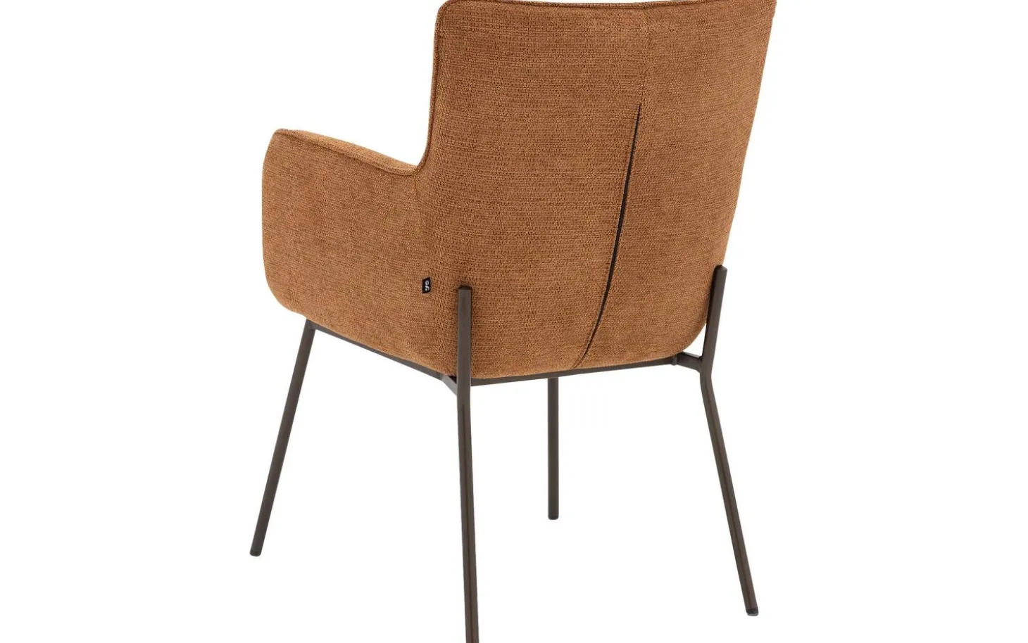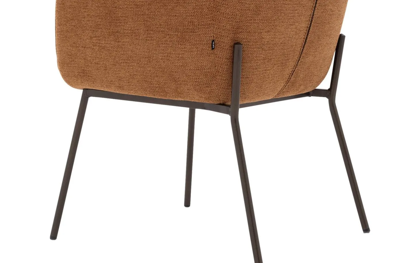 Der cognacfarbene grob gewebte Stoff verleiht dem Esszimmerstuhl Trullo eine reiche Textur, die Wärme und Tiefe in Ihr Esszimmer bringt. Das cognacfarbene Untergestell mit Pulverbeschichtung (anodic brown) passt schön zur Polsterung und sorgt für ein harmonisches Ganzes.